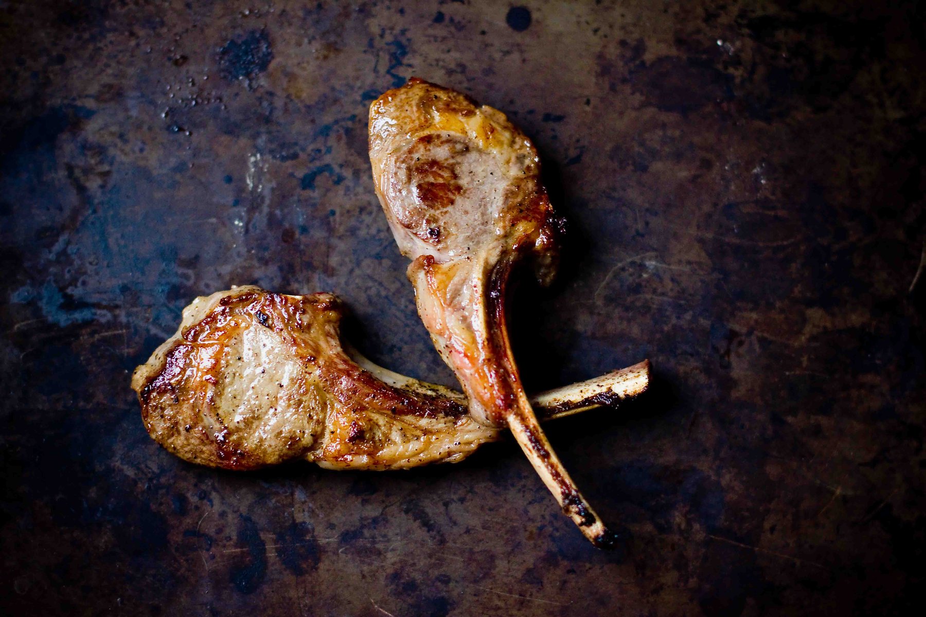 Place the chops in a ziploc bag and add in olive oil enough to coat the chops, then add in garlic, rosemary salt and...