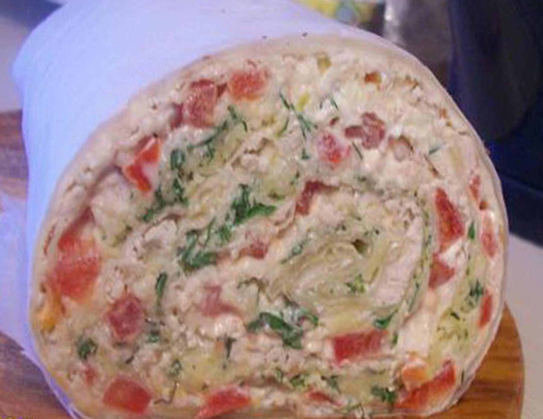 Mix in a bowl the cream cheese and Italian dressing. Spread the cream cheese mixture onto pita bread and top with cucumber tomato and then sprinkle with dill. Fold roll put into the fridge for 15...