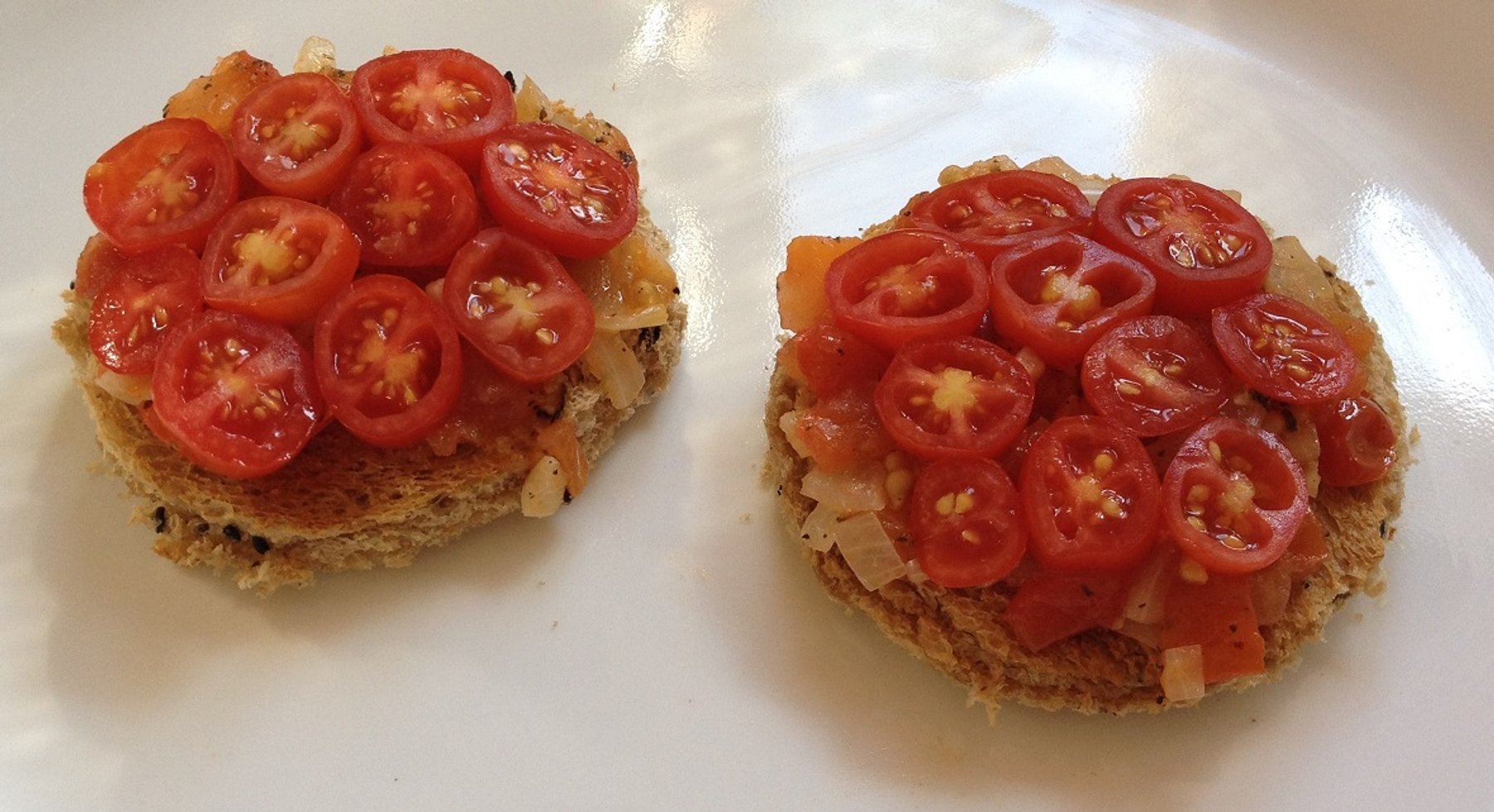 Put tomato filling on top of the bread, spread to cover the entire surface.