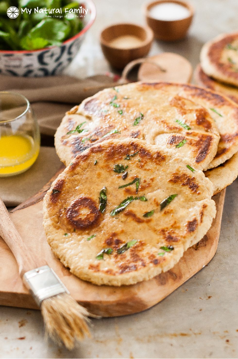 This recipe is for a quick naan bread that doesn't have yeast in it. It uses einkorn, spelt, and oat flours.
