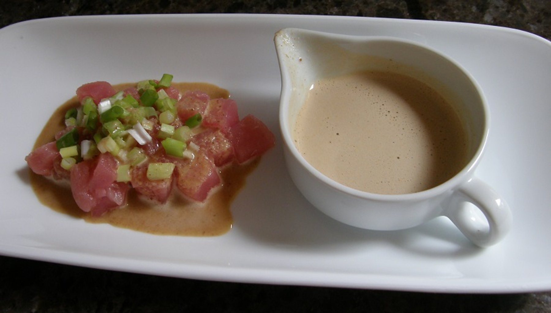 Mix all ingredients in the blender. Serve on salad, noodles, or even tuna sashimi!
