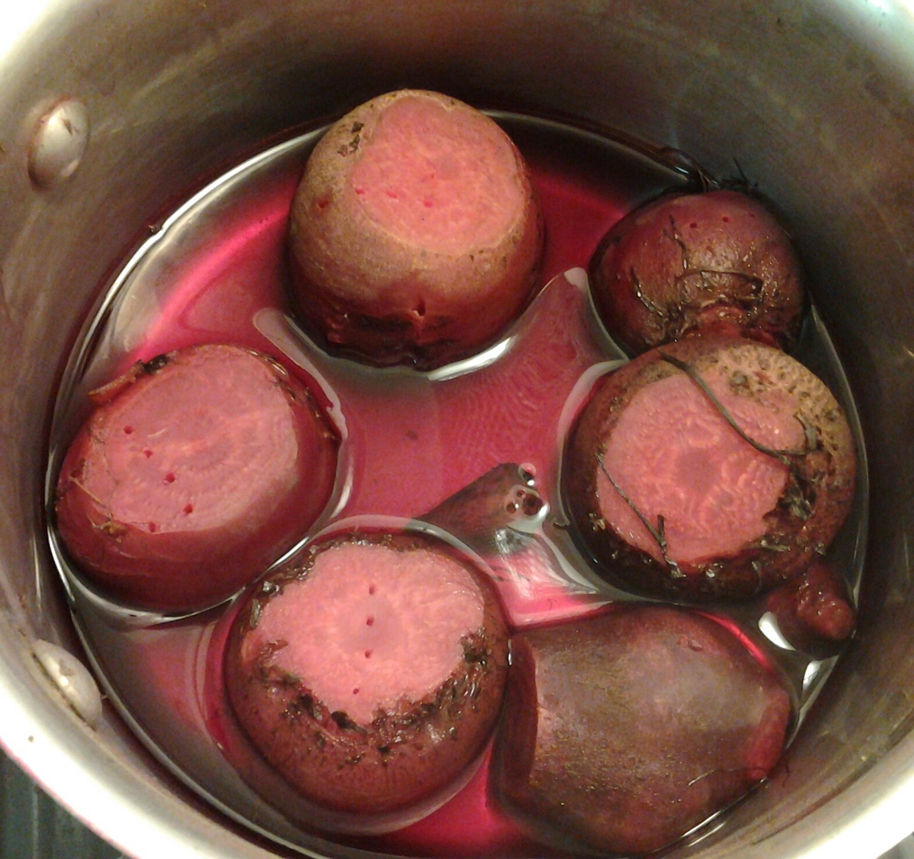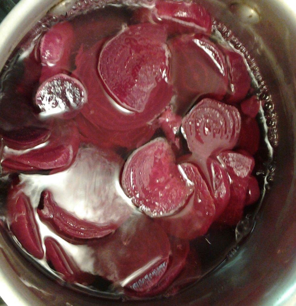 Cut the tops and bottoms of the beets off. In a saucepan, place beets in water just enough to cover the beets. Add 3/4 tsp of salt. Bring to a boil over medium high heat. Once boiling, reduce heat to...