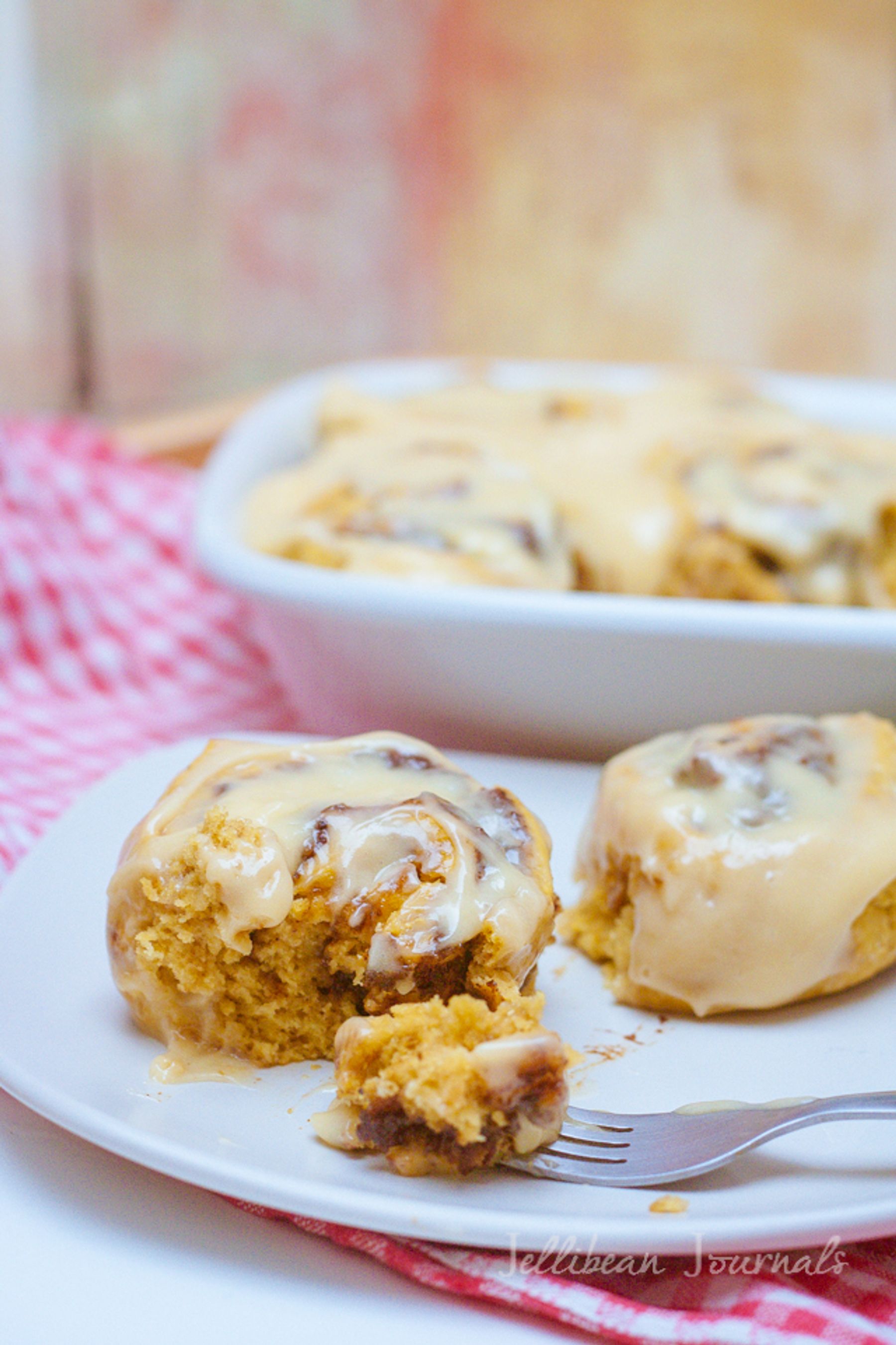Pillow-soft spiced pumpkin cinnamon rolls that come together from start to finish in less than 45 minutes! Soft, sour cream infused dough and pumpkin brown sugar butter filling set your taste buds up for a delicious surprise.