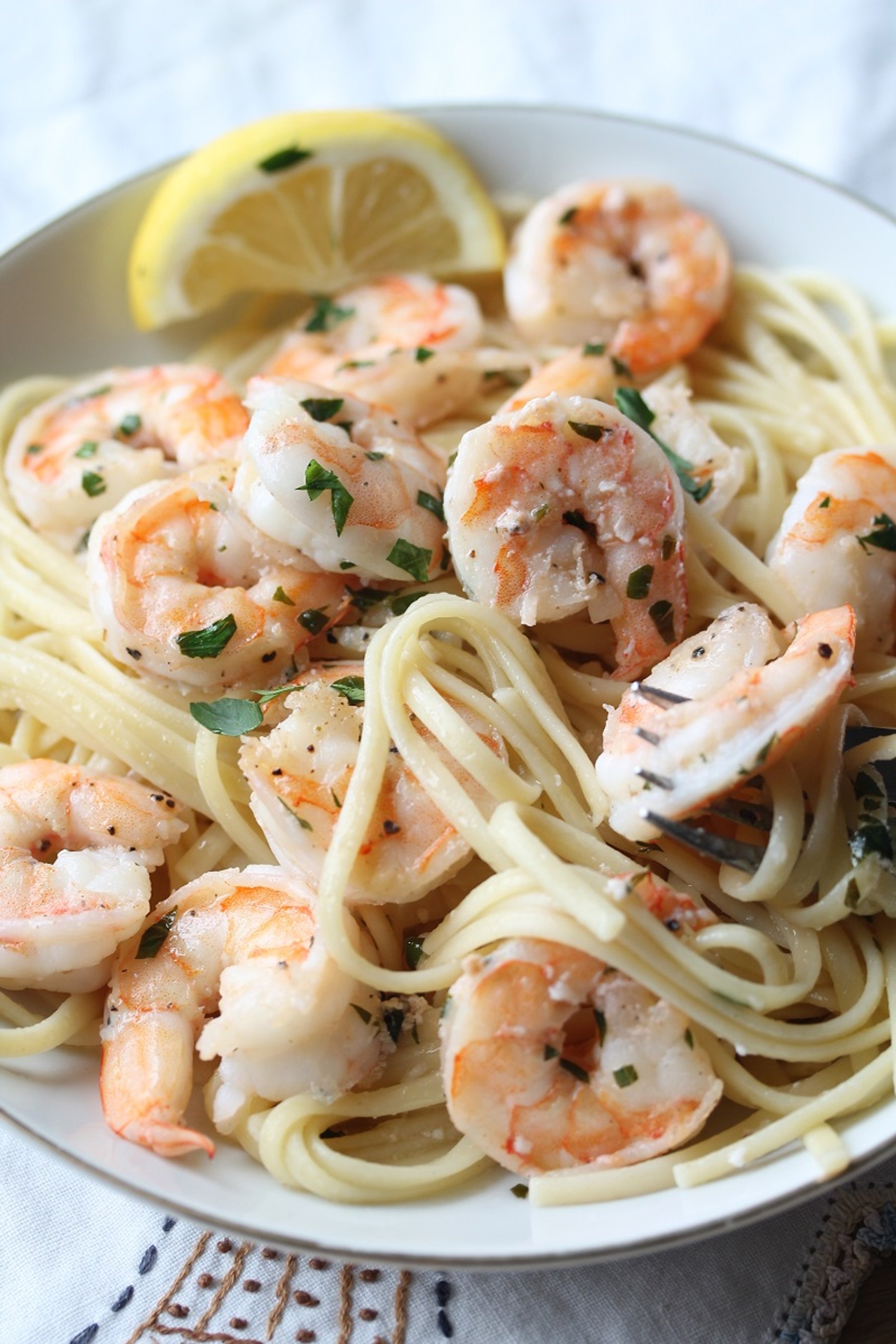 Fast, easy and better for you! Quick Shrimp Linguine with Garlic-Lemon Butter is an easy weeknight dinner that cuts the fat and satisfies with big flavors!