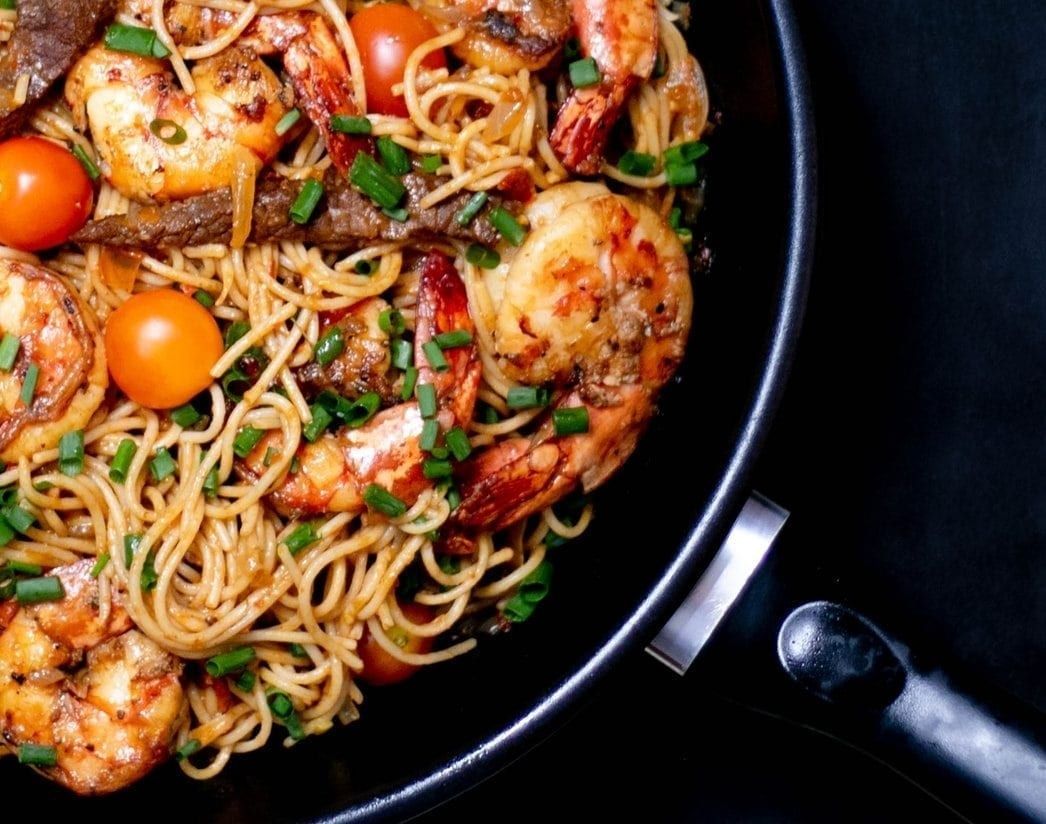 These delicious fried noodles are tossed in a superb sauce, accompanied by crunchy veggies and succulent shrimp. The stir-frying process goes fast. That is the reason why all of the ingredients must be prepared and ready for the quick process.