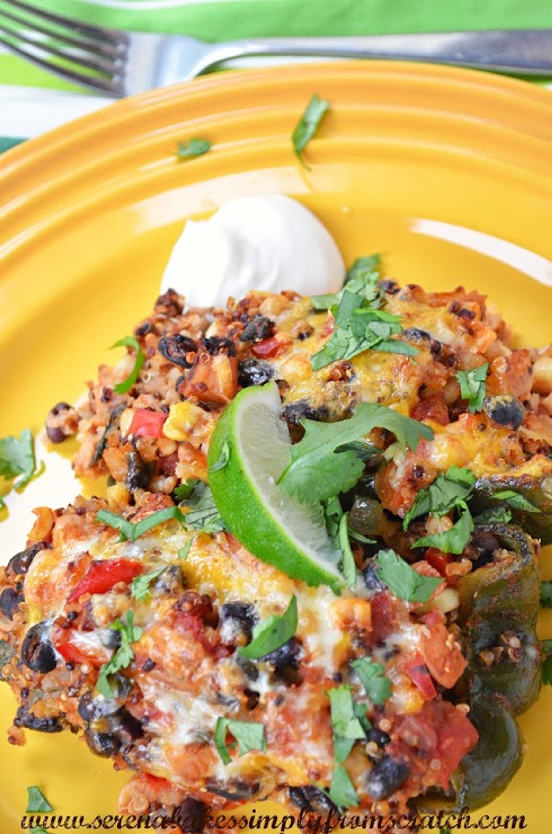 Quinoa Black Bean Chicken Stuffed Poblano Peppers