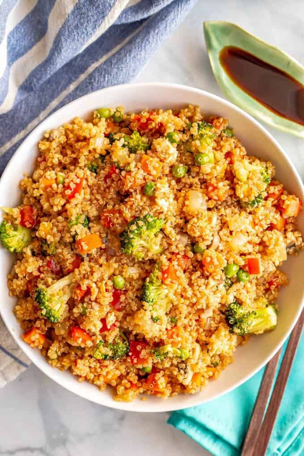This vegetarian quinoa fried rice is quick and easy to make and loaded with fluffy quinoa and tender veggies. A great 20-minute weeknight dinner!