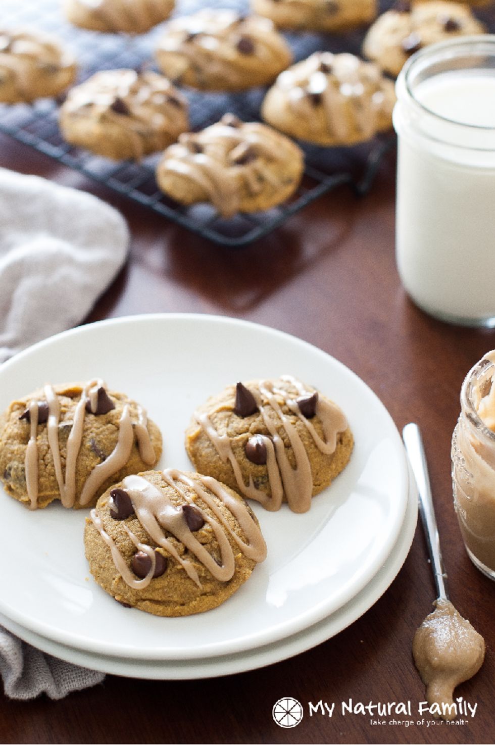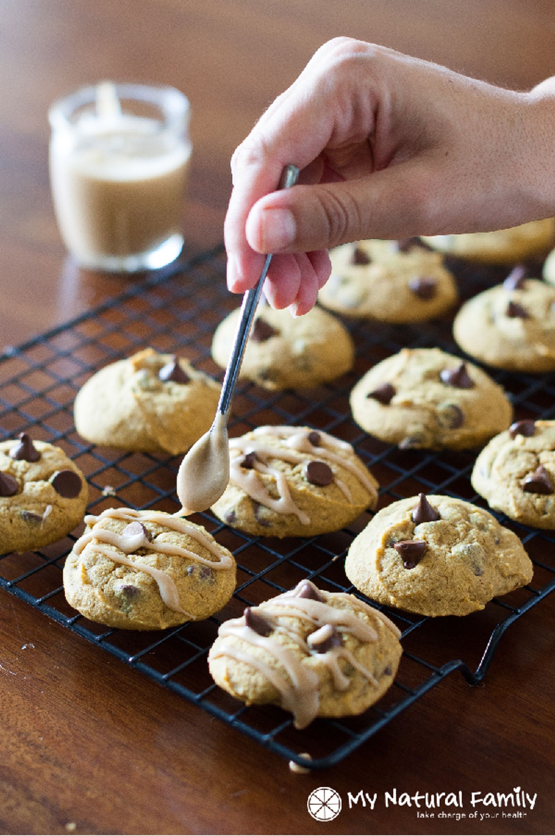 These are delicious gluten-free pumpkin chocolate chip cookies with a glazed brown sugar icing on the top.
