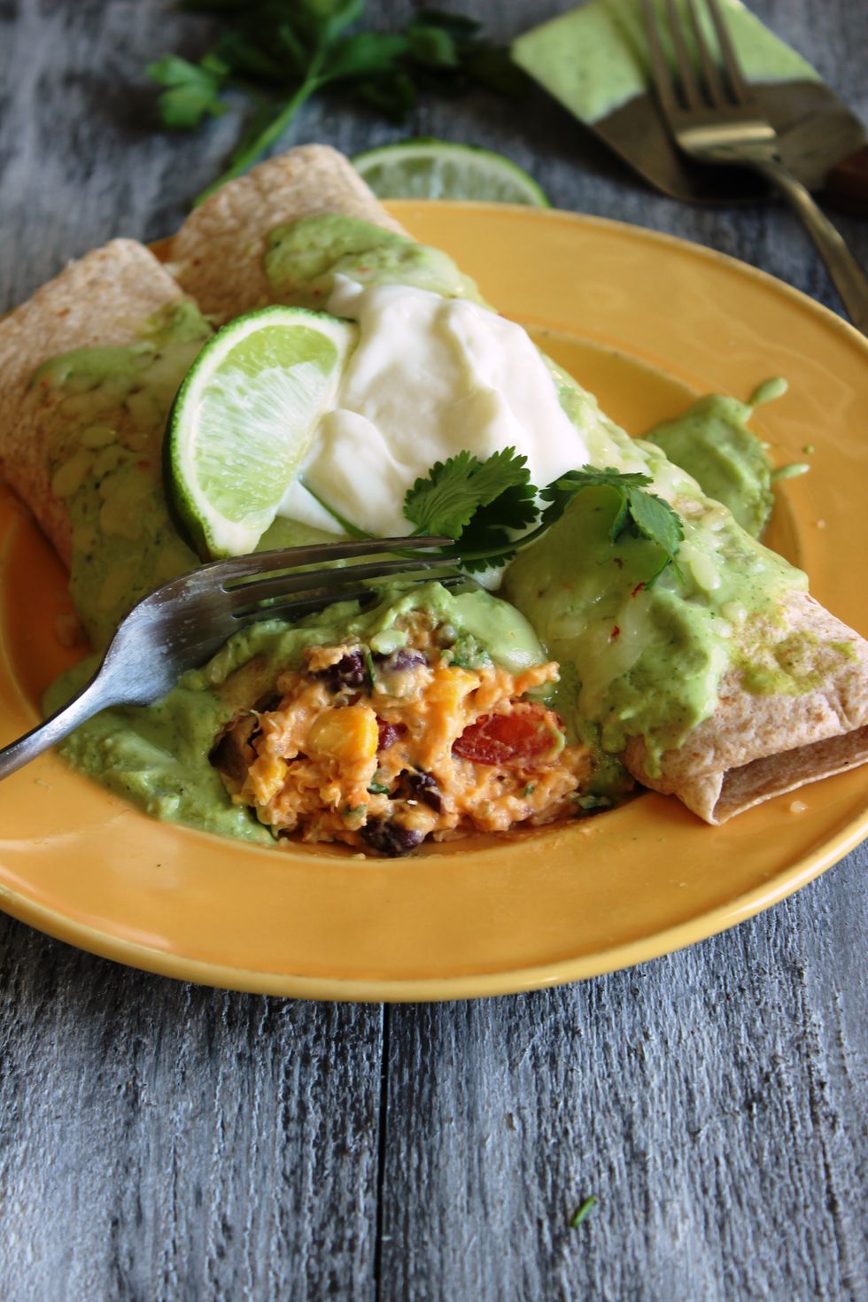1 can (15 oz) black beans, rinsed and drained (I used red pepper and jalapeno black beans which give these enchiladas a kick!)