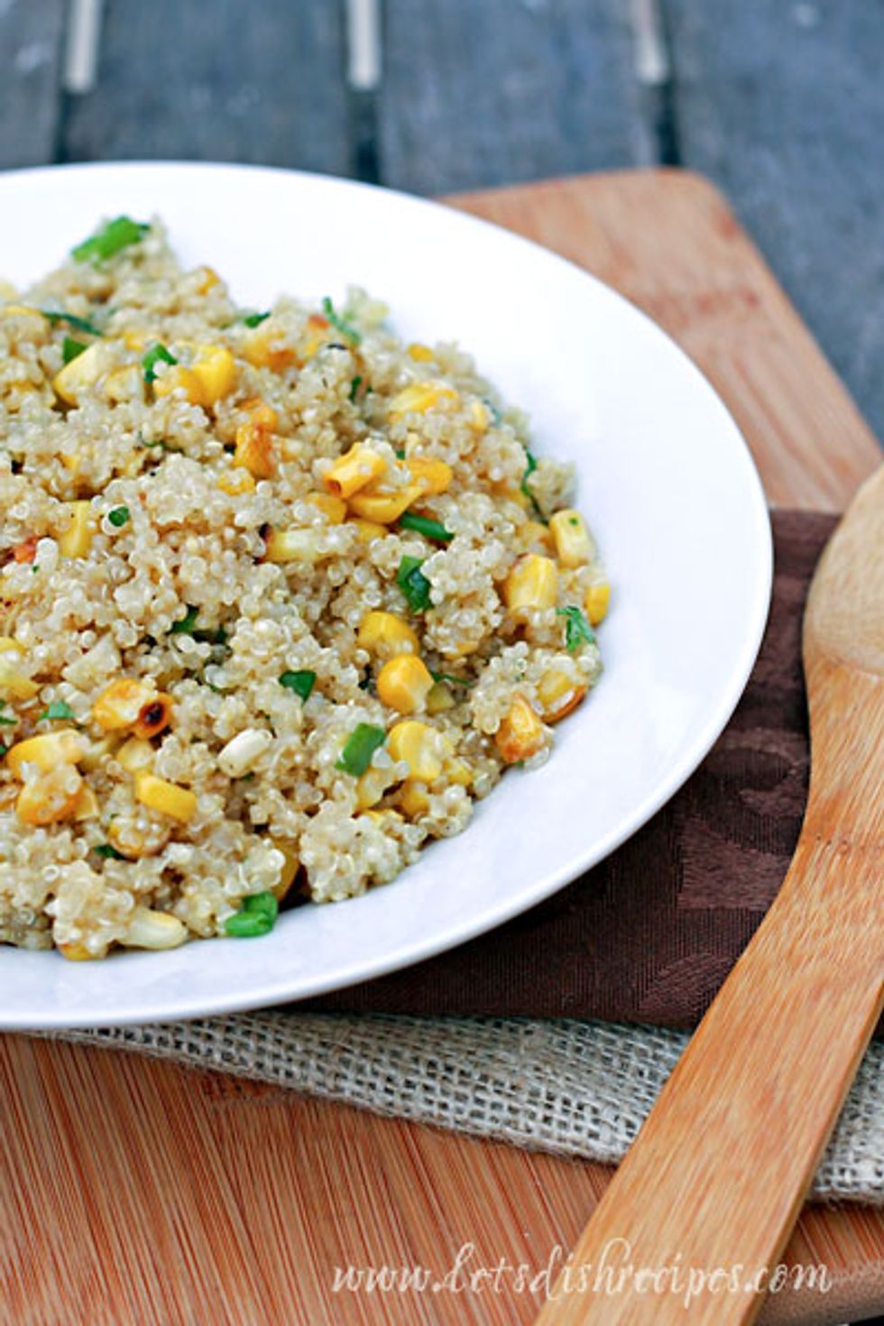 Quinoa and roasted corn tossed with scallions, butter, lemon and a touch of honey.