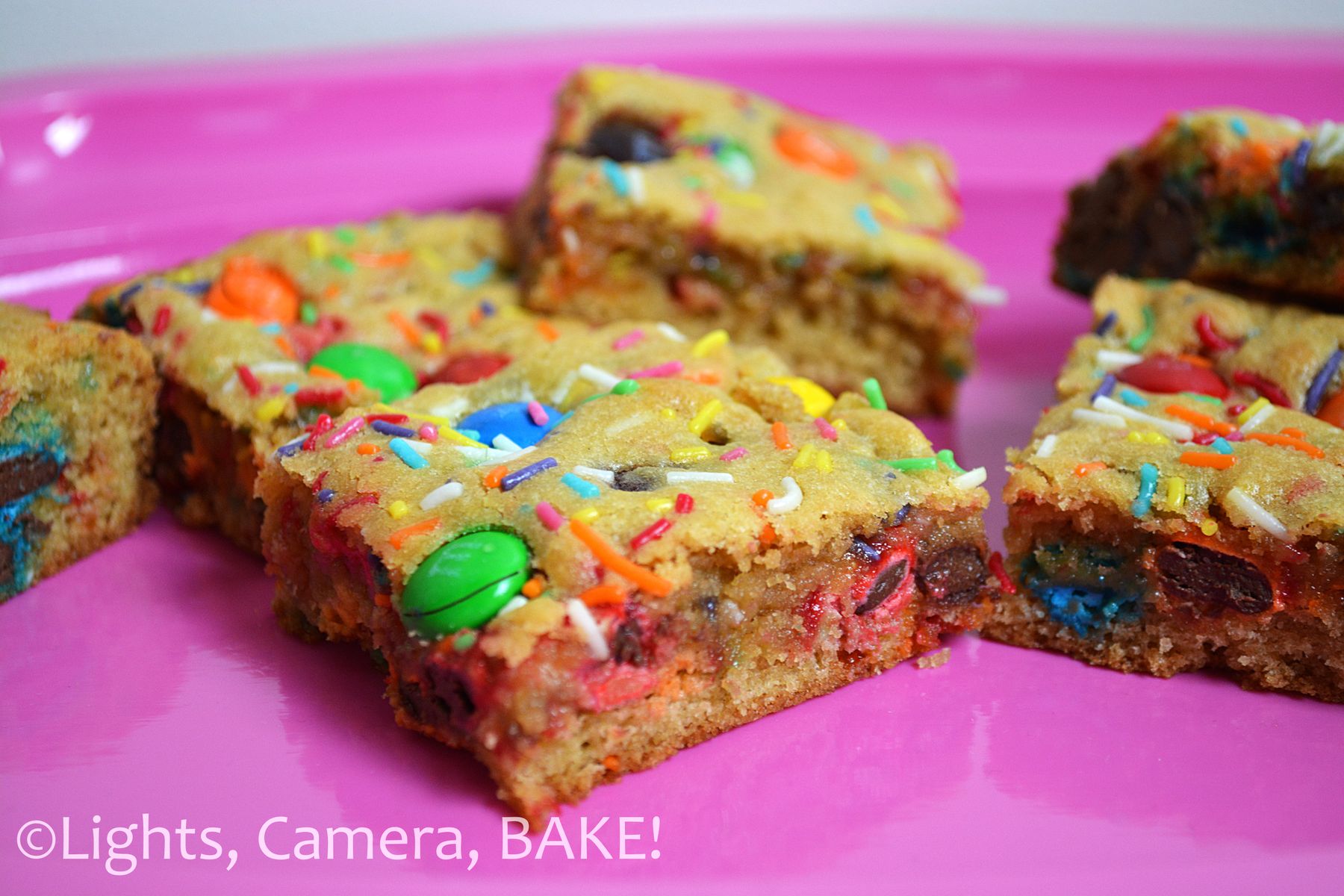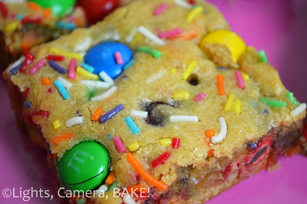 Rainbow M&M Blondies are gooey, chewy blondies filled with chocolate chips, M&Ms and rainbow sprinkles to make these fun and colourful.