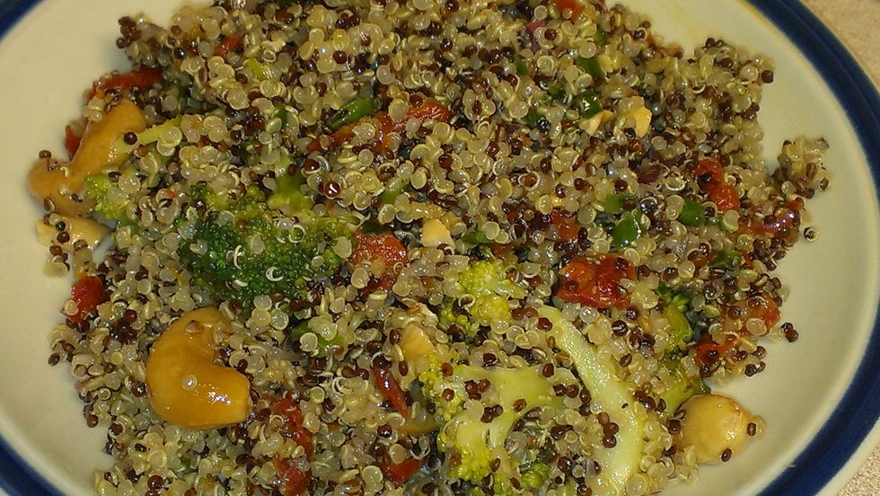Pour in the olive oil mixture and stir until salad is evenly coated.
