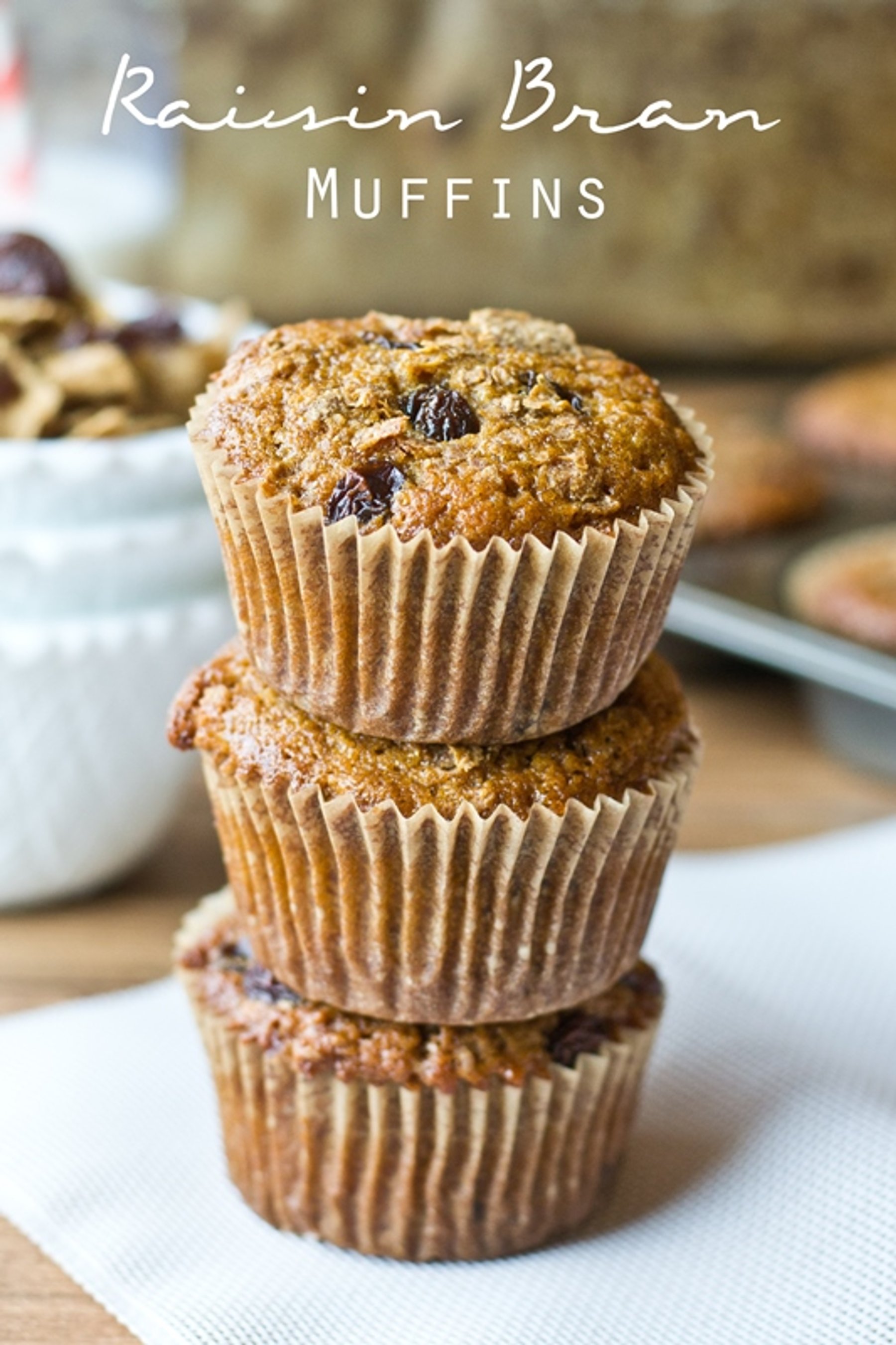 Raisin Bran Muffins are made with whole wheat flour, bran flakes and raisins for a sweet, healthy start to your day.