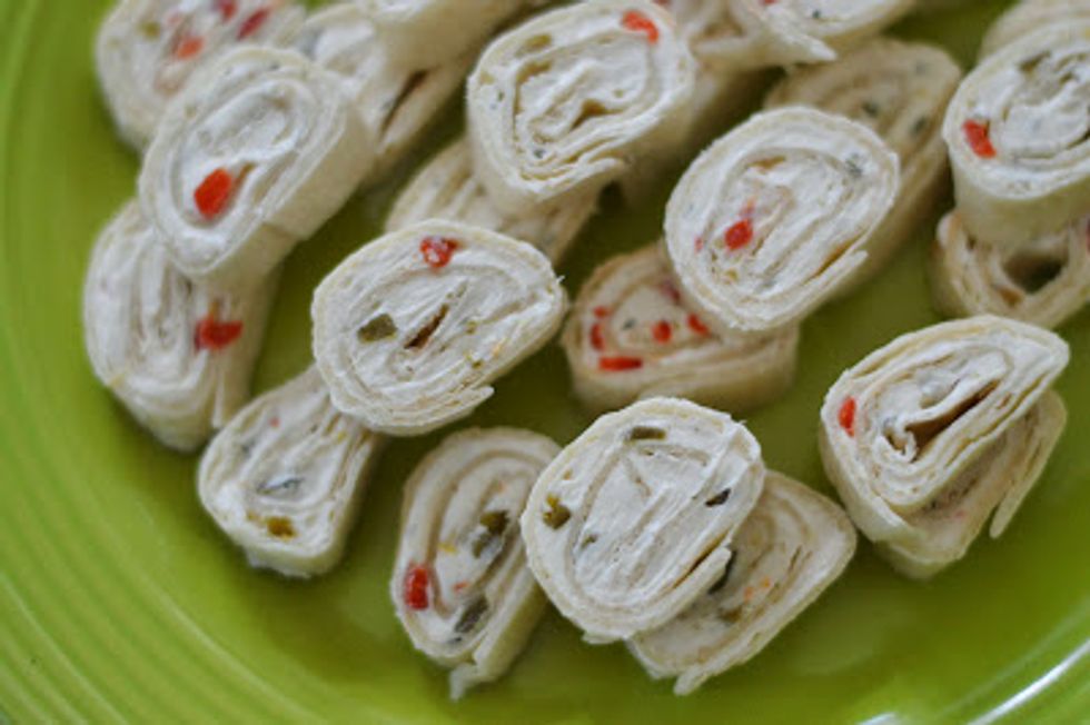 Mix all the ingredients together. Spread evenly (but generously) all over the tortillas, right up the edges. Roll and slice. Store in refrigerator and serve chilled.