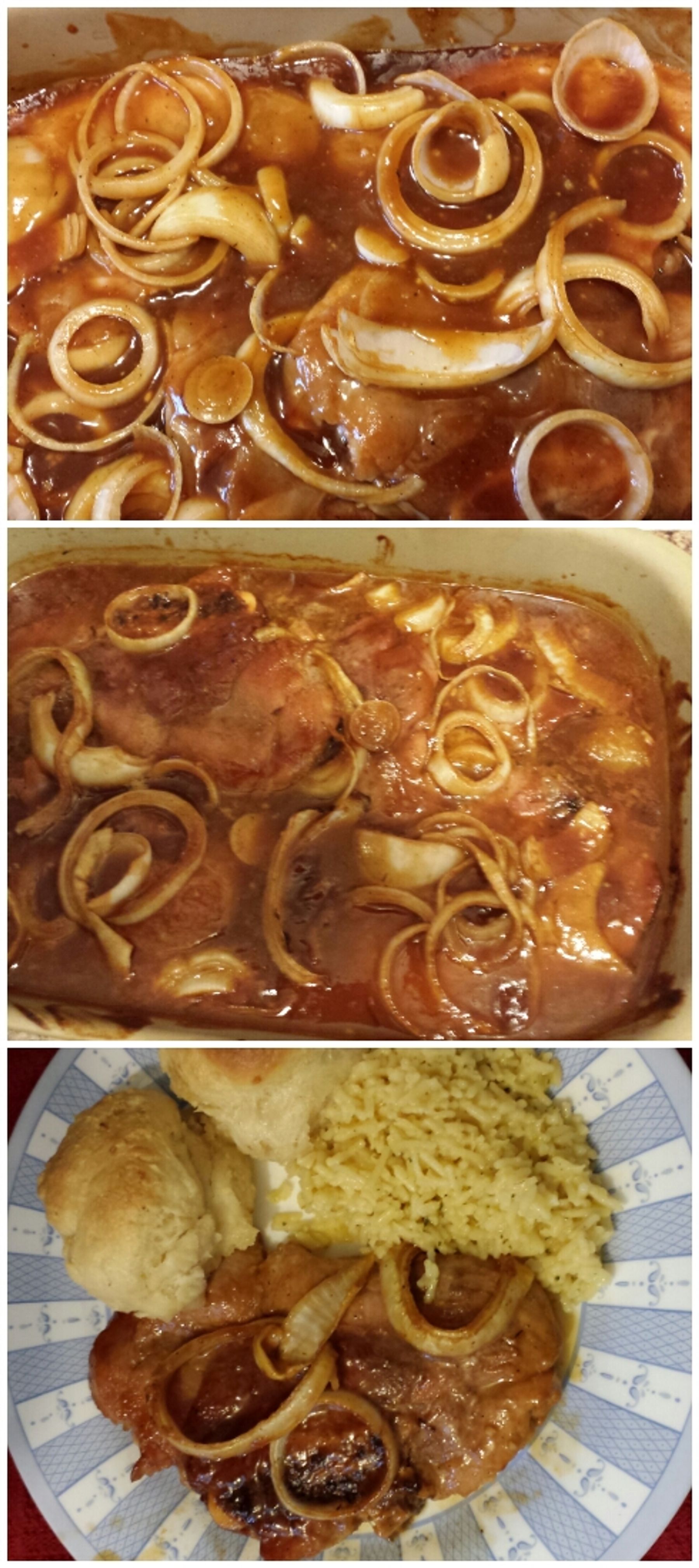 In a small bowl, mix remaining ingredients and pour mixture over pork steaks.