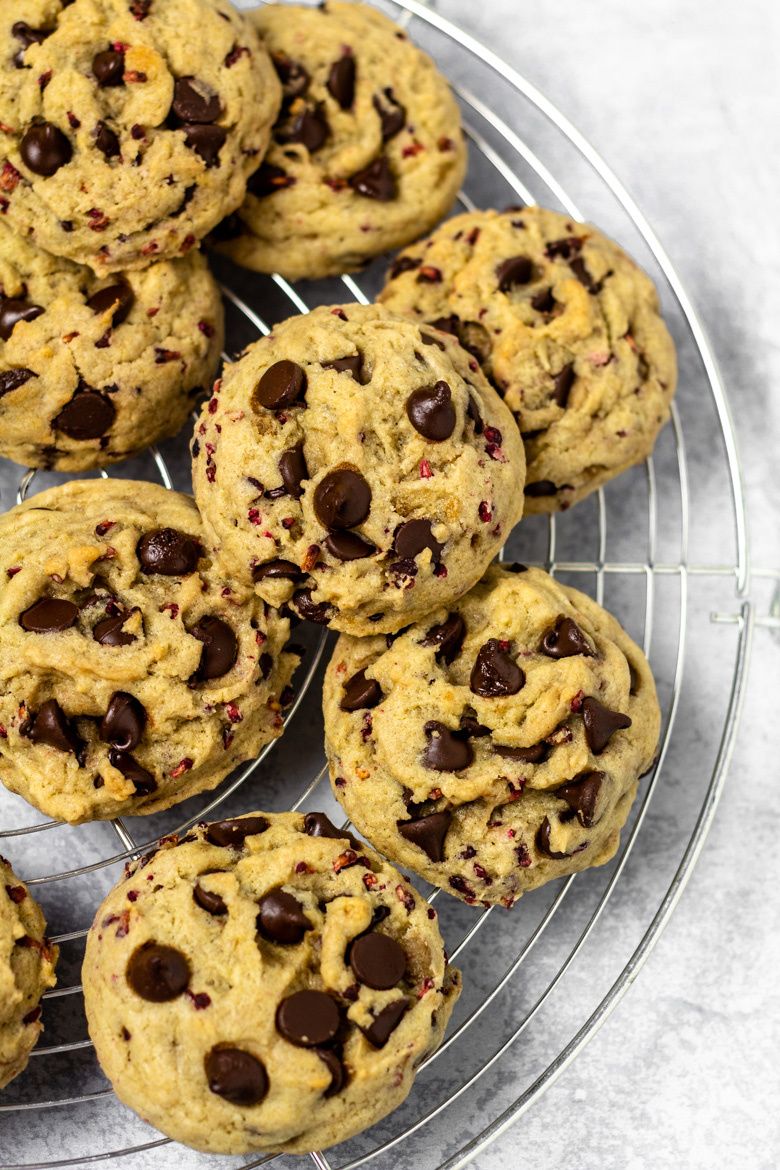 Raspberry Banana Cookies Simply Bake February 25, 2020 119 Delicious thick, soft, and chewy chocolate chip cookies that are loaded with banana flavour, and studded with freeze-dried raspberry crumbs! Get the recipe on Marsha's Baking Addiction! See the full directions on my site raspberry banana cookies