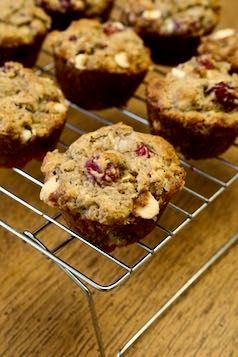 Delicious muffins made with oatmeal, raspberries and white chocolate.