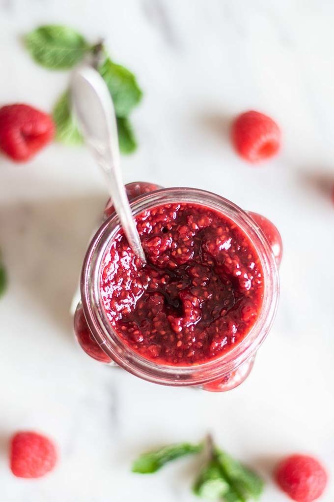 It's easy to make homemade raspberry chia jam. This recipe is 100% fruit sweetened and makes a great spread, topping, or addition to desserts. Learn how to make sugar free chia jam with this easy recipe! This is a vegan and paleo raspberry jam recipe.