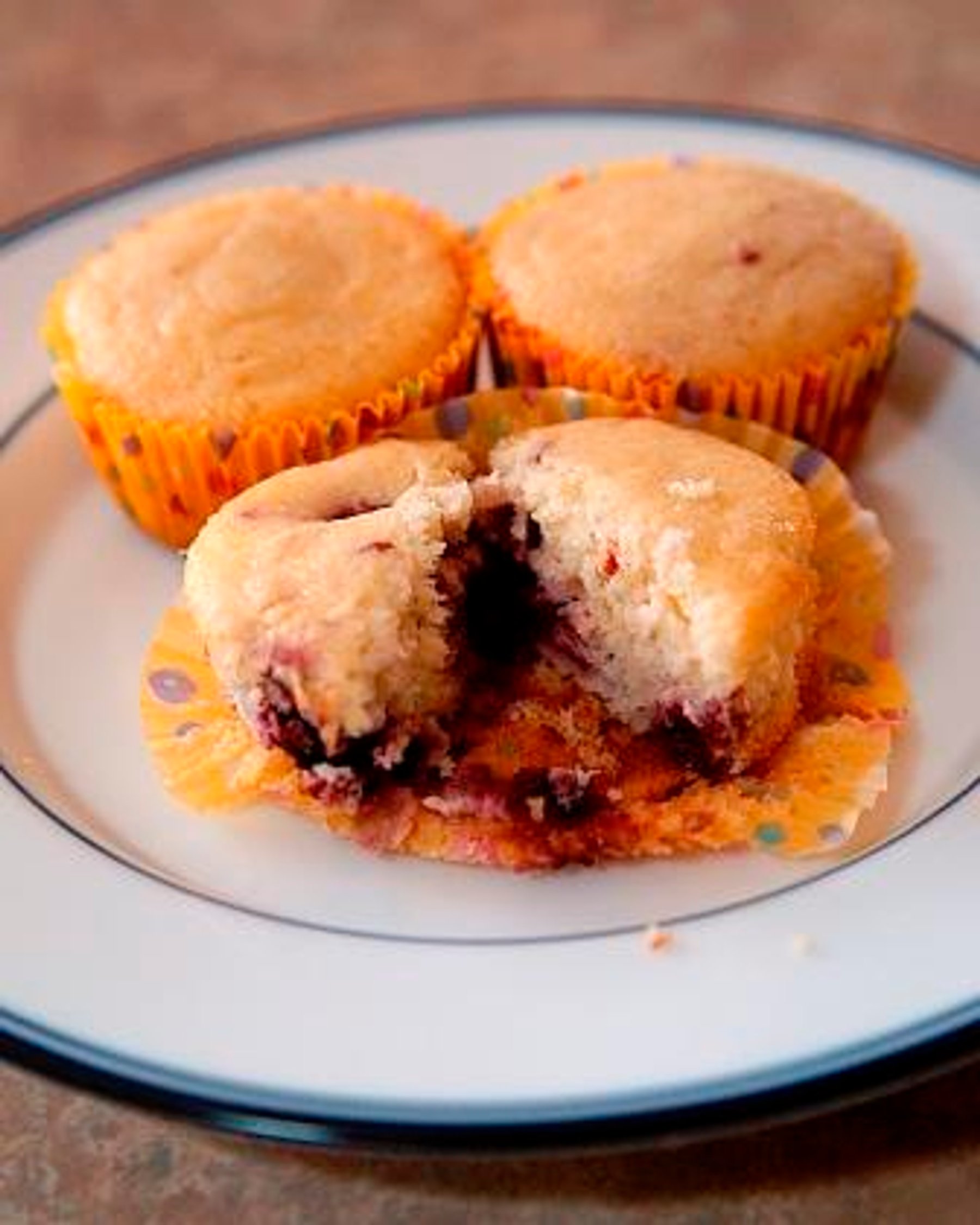 A deliciously moist muffin with cream cheese and raspberries.