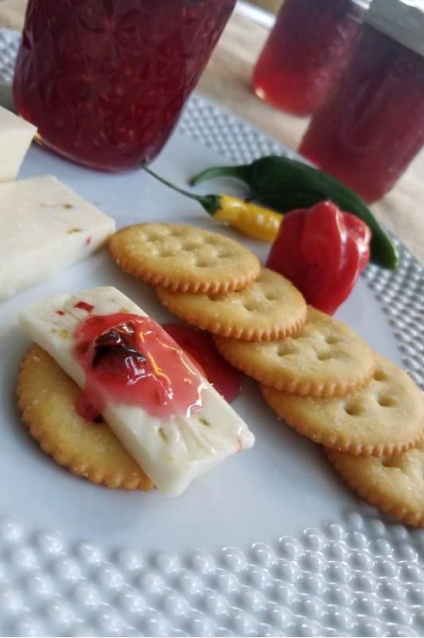 The combination of sweet and spicy is perfect in this raspberry hot pepper jelly recipe. This is an easy jelly recipe that makes a lot of jelly! The whole family will love this jelly on crackers! The flavor is outstanding and the jelly isn’t spicy hot. This recipe is perfect for gardeners who grow peppers in the summer. It is a good way to use up those peppers before they spoil. This is a simple jelly recipe that does not involve a full canning experience. I like to keep it simple at my house.