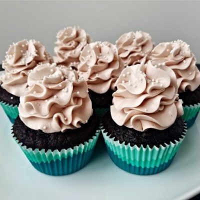 Chocolate cupcakes with a gooey Nutella center topped with a silky raspberry Swiss meringue butter cream make these Raspberry Nutella Cupcakes so delicious! #cupcakes #nutella #raspberry #swissmeringuebuttercream #chocolate