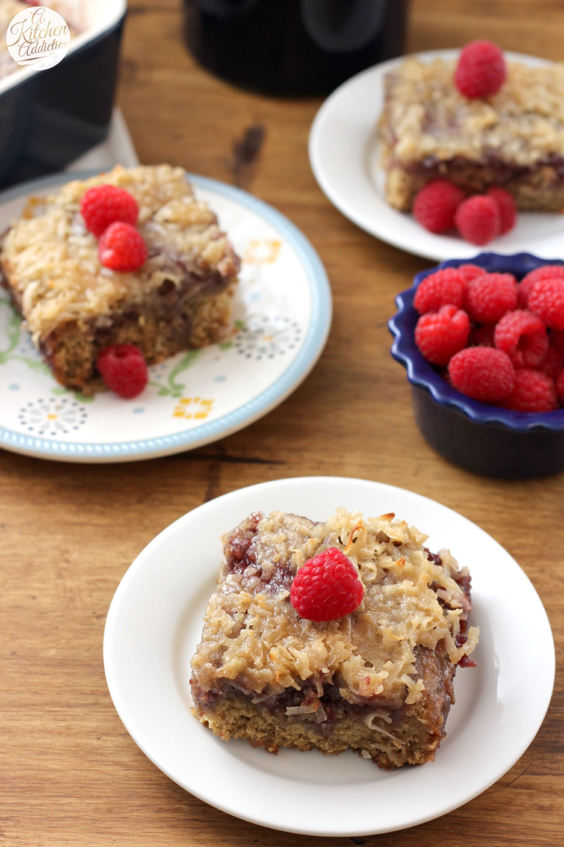 A soft, moist cake swirled with sweet raspberries and topped with a toasted carmel coconut glaze!