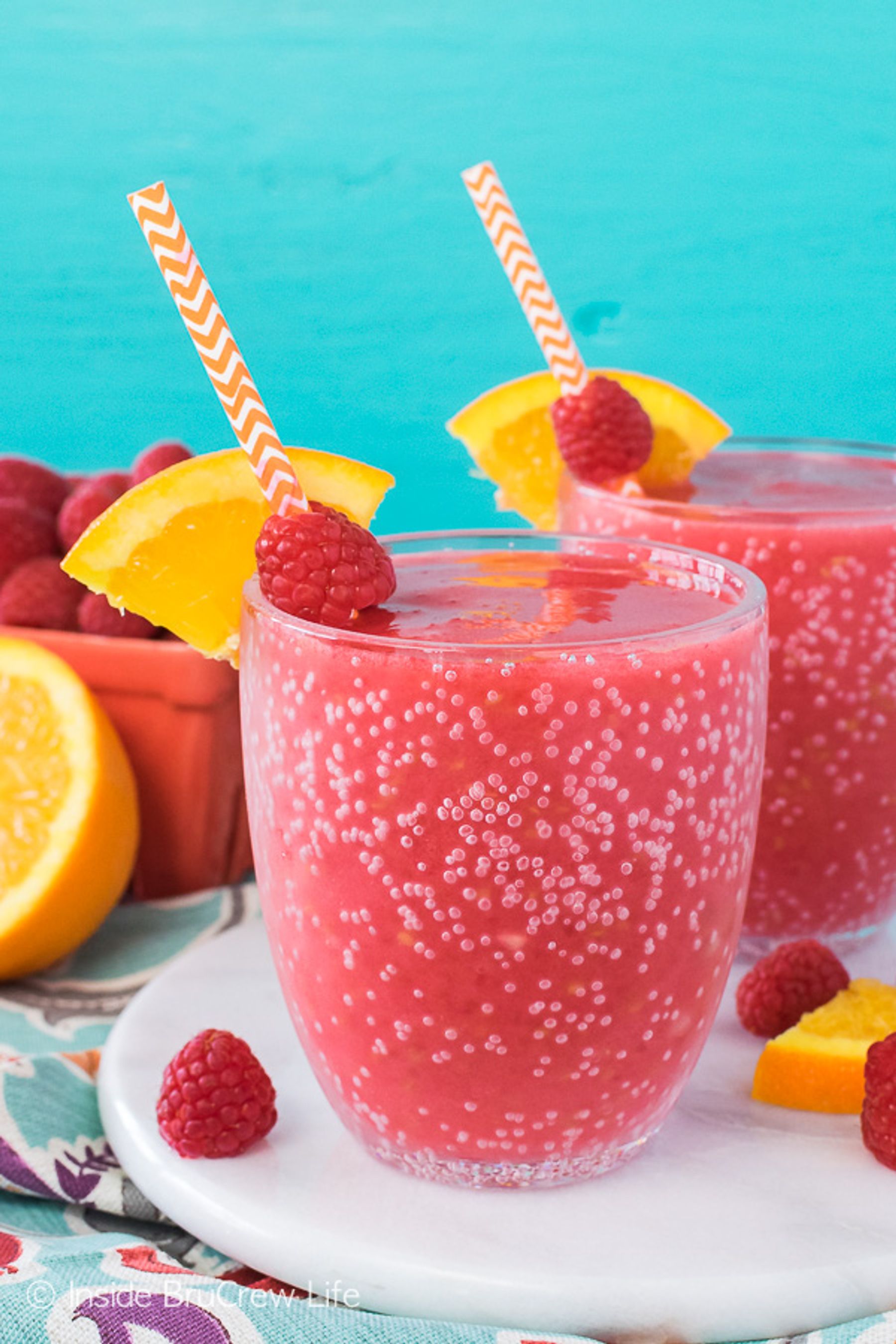 A pitcher of these easy Raspberry Orange Slushies is a great way to cool off on a hot summer day. Fresh fruit, juice, and ice makes such a refreshing drink.