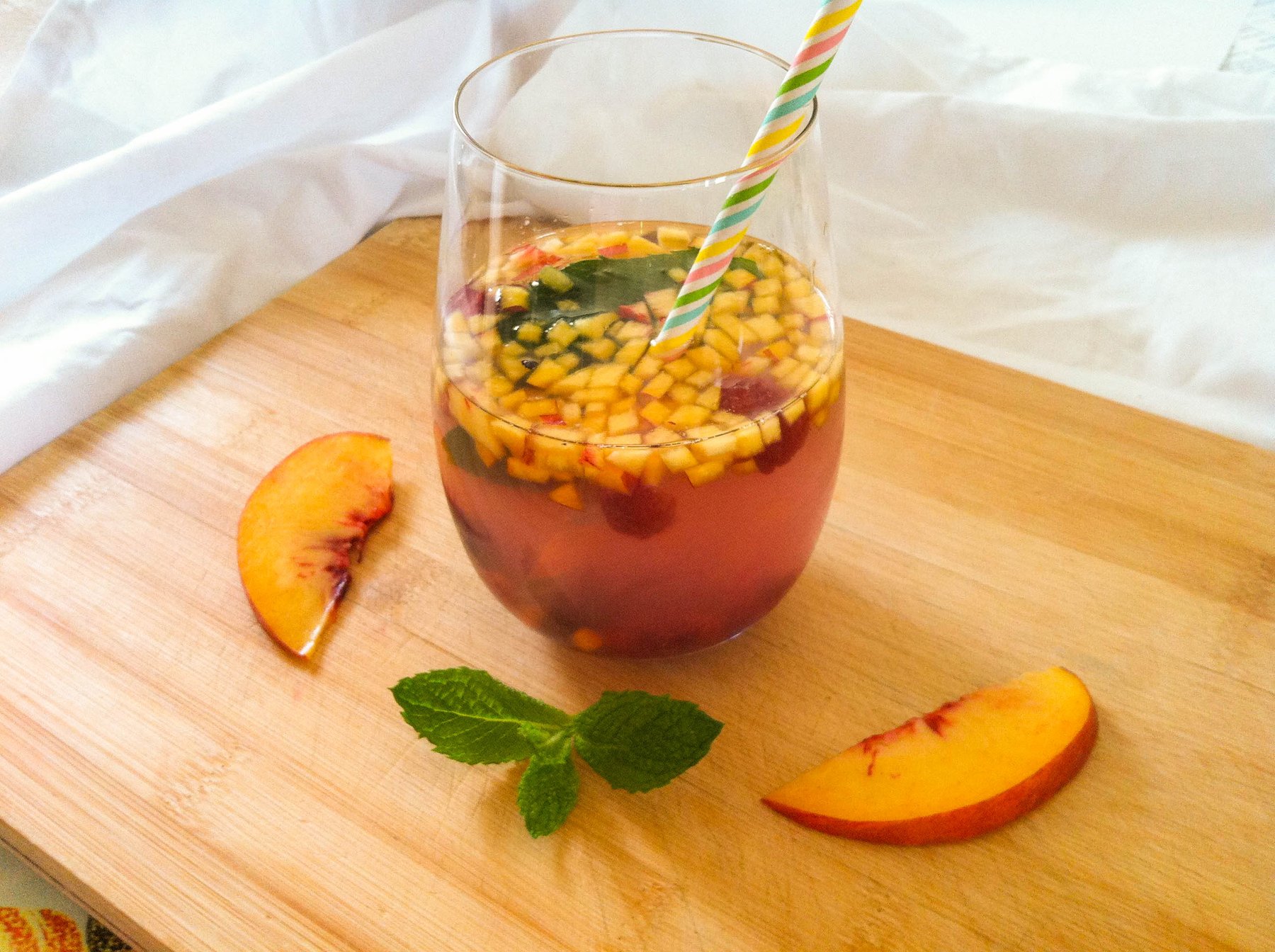 Refreshing coconut water infused with mint, raspberries, and peach. Filled with tons of fruit, this drink is perfect for hydrating on a hot summer day.