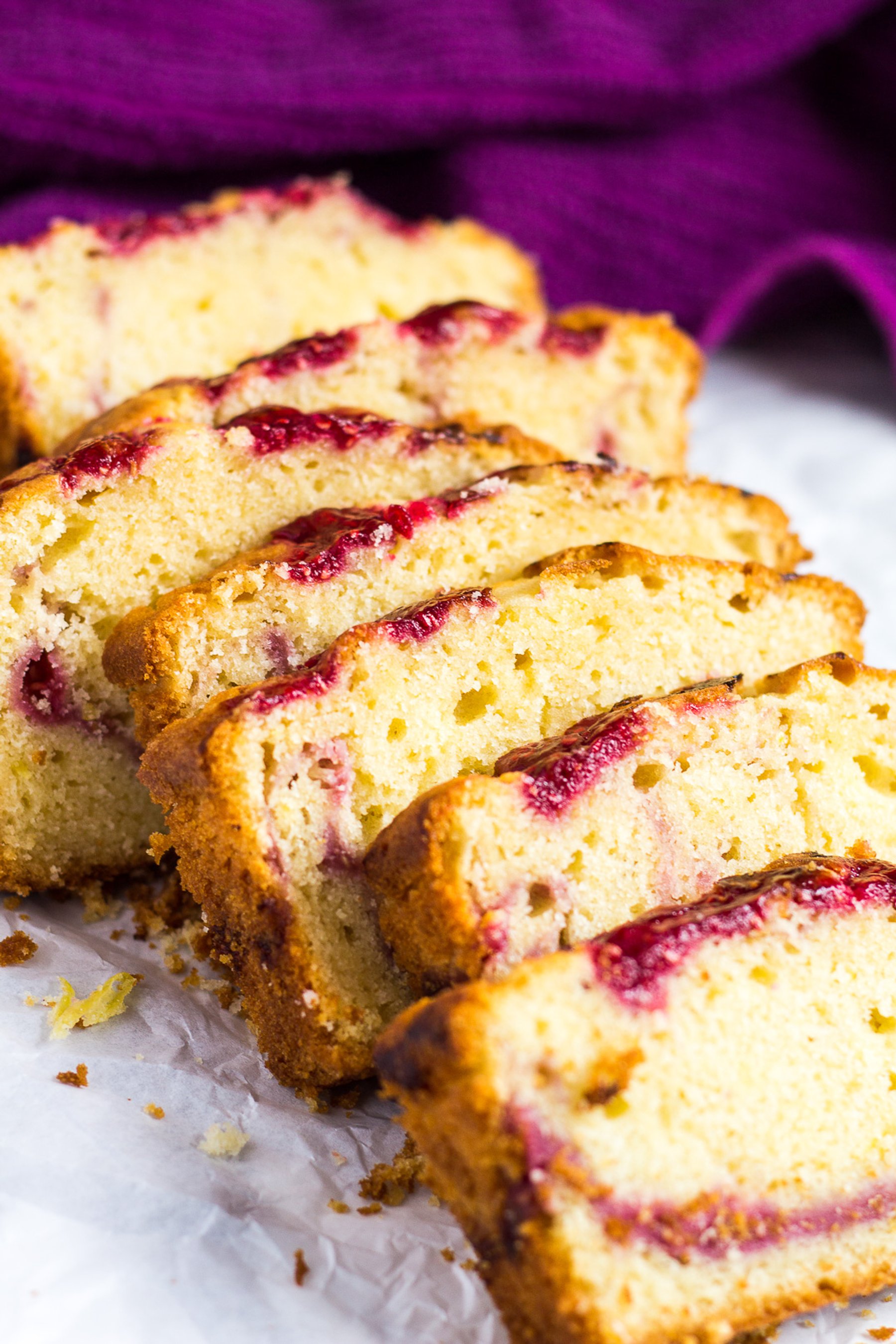 Incredibly moist and fluffy lemon-infused pound cake swirled with a fresh raspberry sauce!