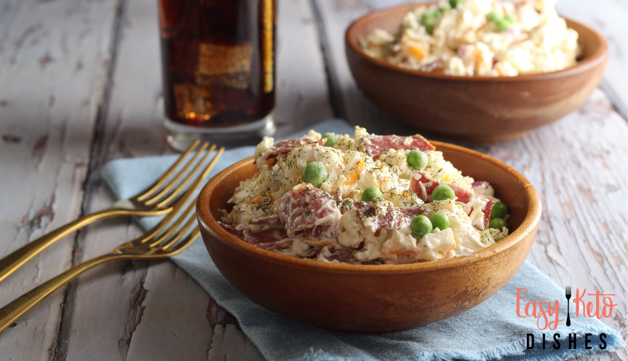 Creamy, with just the right amount of crunch, this keto friendly, raw cauliflower salad is the perfect side dish any time of year!