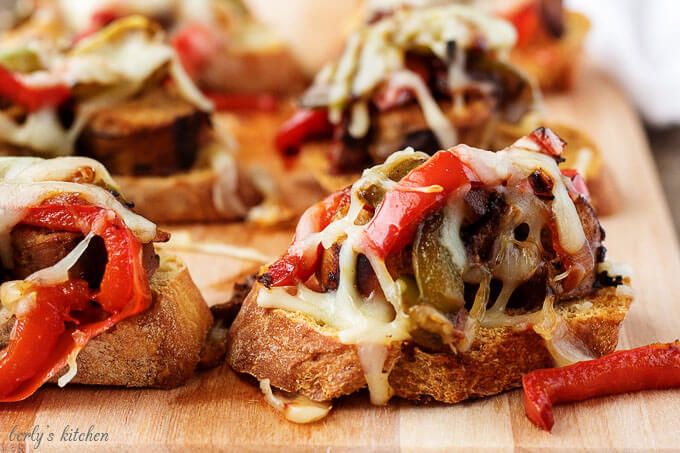 This recipe for sausage and peppers crostini is a simple appetizer combining the classic flavors of Italian sausage, sweet peppers, and spicy onions, topped with savory mozzarella.