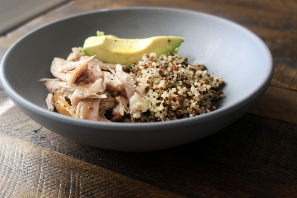 Red and White Quinoa with Warm Chicken Salad and Avocado