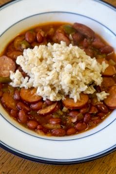 Flavorful, creamy and delicious red beans with smoked sausage and topped with rice.