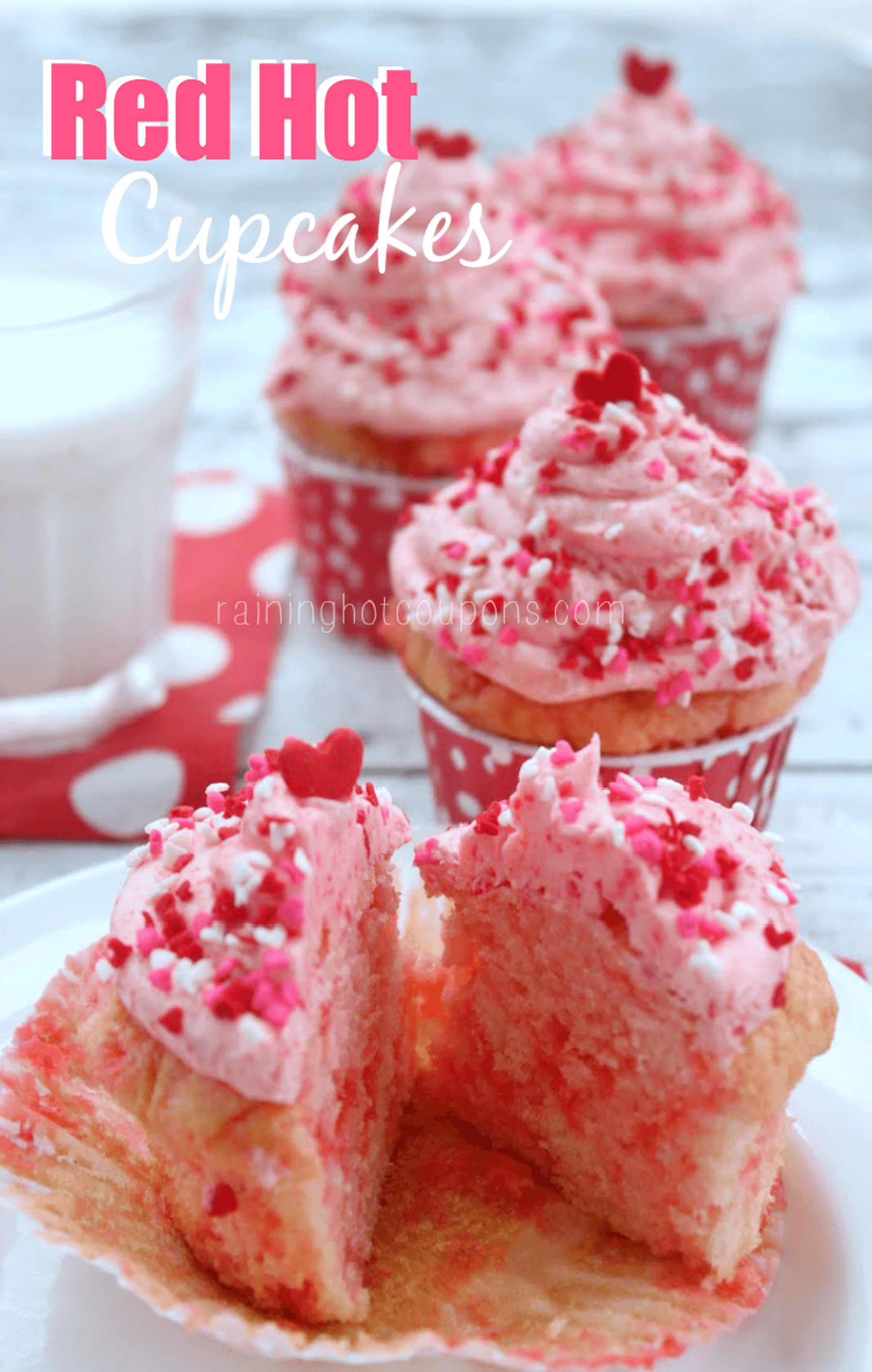 These Red Hot cupcakes are perfect for Valentine’s day or a little ones bake sale. These are really tasty because they have a pop of flavor with the red hots and to make it less spicy you can just add less. Enjoy…