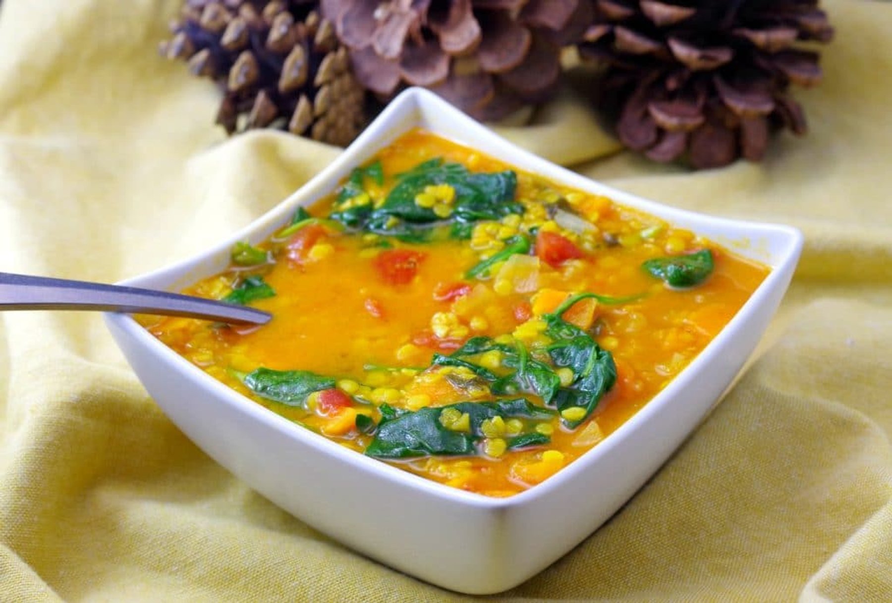 Easy Red Lentil Spinach soup - Food Meanderings