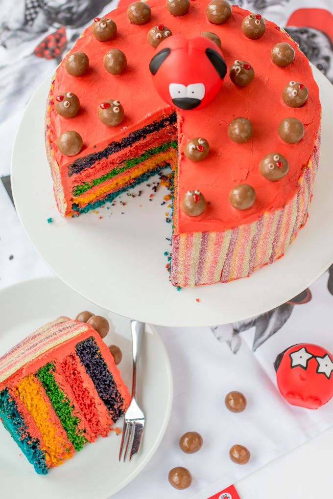 Vimto Buttercream, Fizzy Rainbow Belt Coating and Little Malteser Faces! All the right ingredients for a wacky Red Nose Day Rainbow Cake!