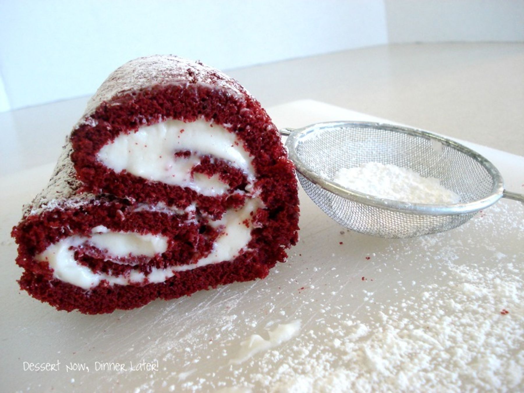 Red Velvet Cake filled with Cream Cheese Icing & rolled into the shape of a heart. Perfect for Valentine's Day lovers or a special holiday treat for your kids' lunch boxes.
