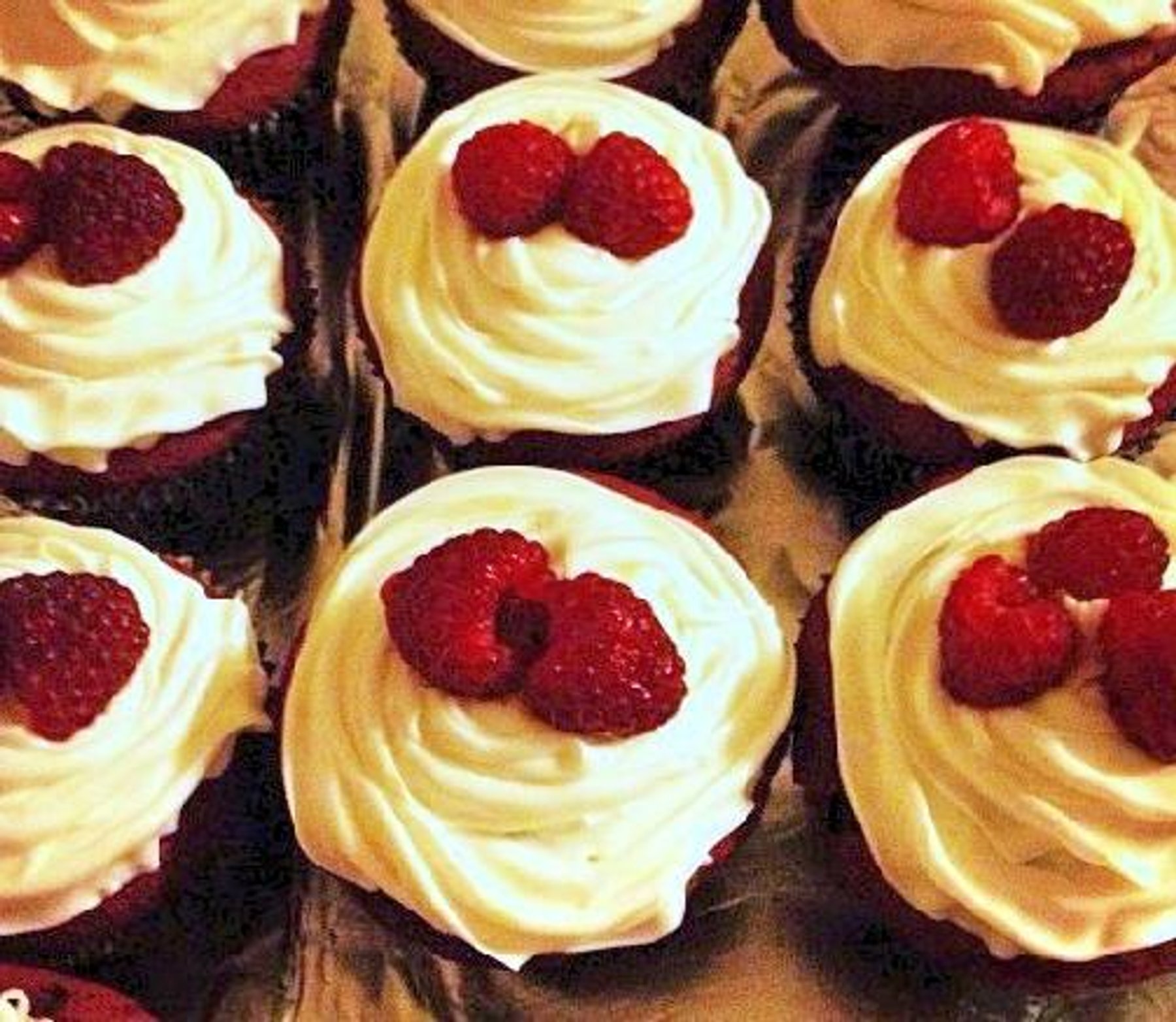 Cupcakes seem to be one of American’s favorite snacks. Below is my recipe for making some delicious and flavorful red velvet cupcakes with a cream cheese frosting. The cupcakes are made with cocoa, butter, sugar, vanilla, red wine vinegar, red food coloring and buttermilk These cupcake are not only a treat for your taste buds but are also visually stimulating by the contrast in colors of the red velvet cake with the white cream cheese frosting. I also garnish them with some fresh raspberries