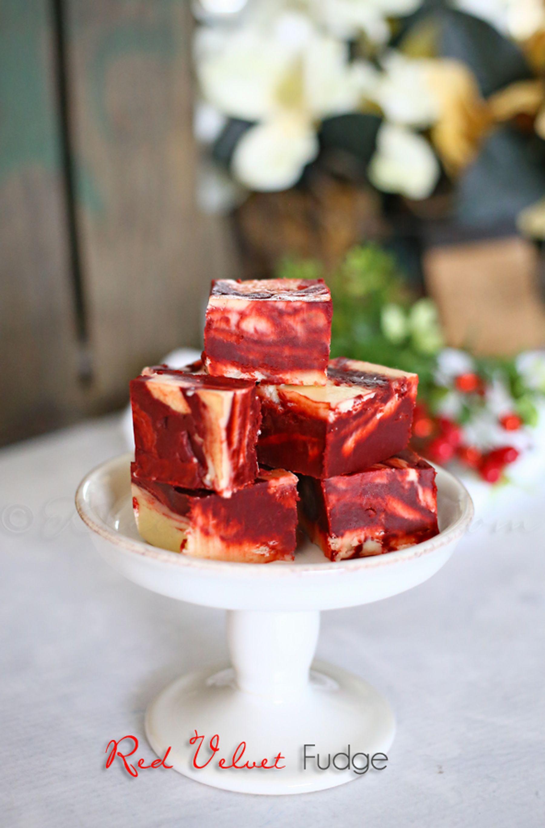 Decadent red velvet fudge swirled with white chocolate - incredible.