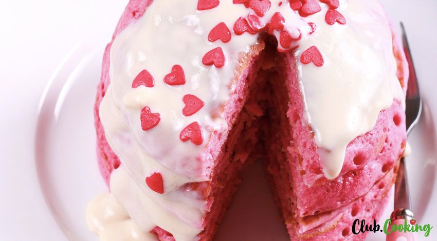 If you are planning a surprise breakfast for your loved one on an anniversary or birthday, nothing works quite like red velvet pancakes. Looking absolutely fabulous with their vibrant red color and snow white cream cheese sauce, they are a perfect start of a special day.
