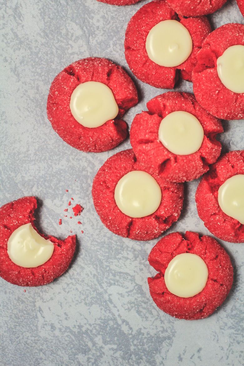 Red Velvet Thumbprint Cookies Simply BakeFebruary 11, 2020 316 Deliciously soft and chewy vanilla-infused thumbprint cookies that are coloured a vibrant red, and filled with a sweet cream cheese centre. Perfect for Valentine's Day!Get the recipe on Marsha's Baking Addiction!See the full directions on my site red velvetcookies