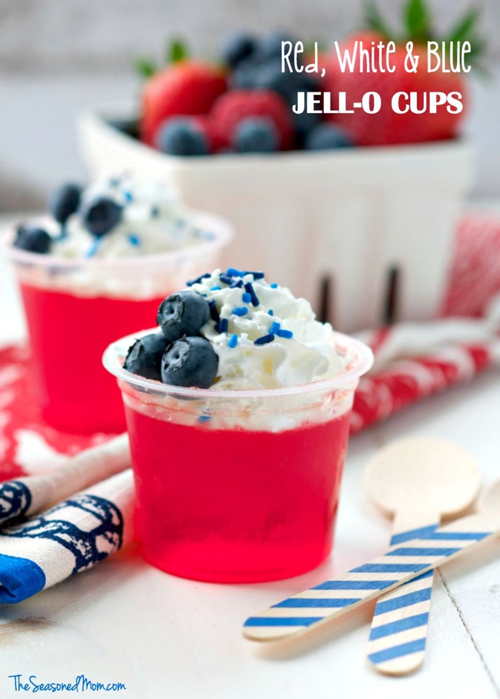 You only need 3 ingredients and less than 1 minute to prepare these easy no-bake Red, White and Blue Jell-O Cups! They are the perfect kid-friendly patriotic snack or dessert for Fourth of July parties and other festive occasions!