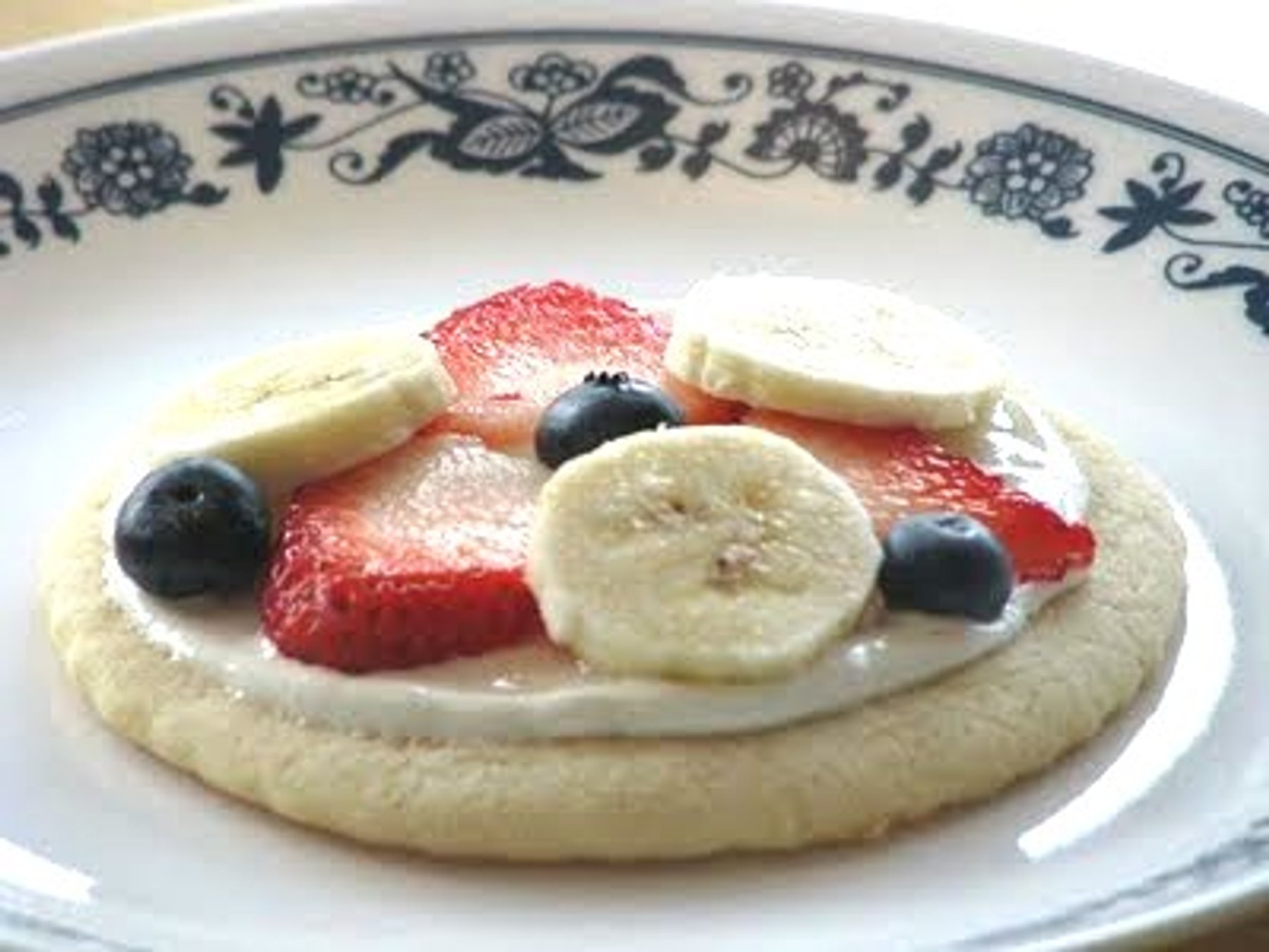 Make up a batch of these mini fruit pizzas for your next BBQ and watch them fly off the plate! They are light and sweet. The perfect mixture of dessert and fruit salad.