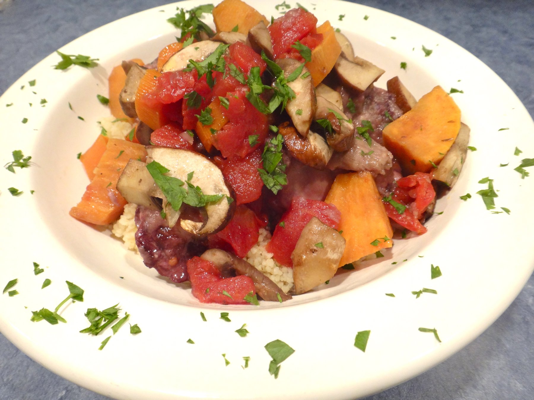 Red Wine Chicken Stew over Cous Cous