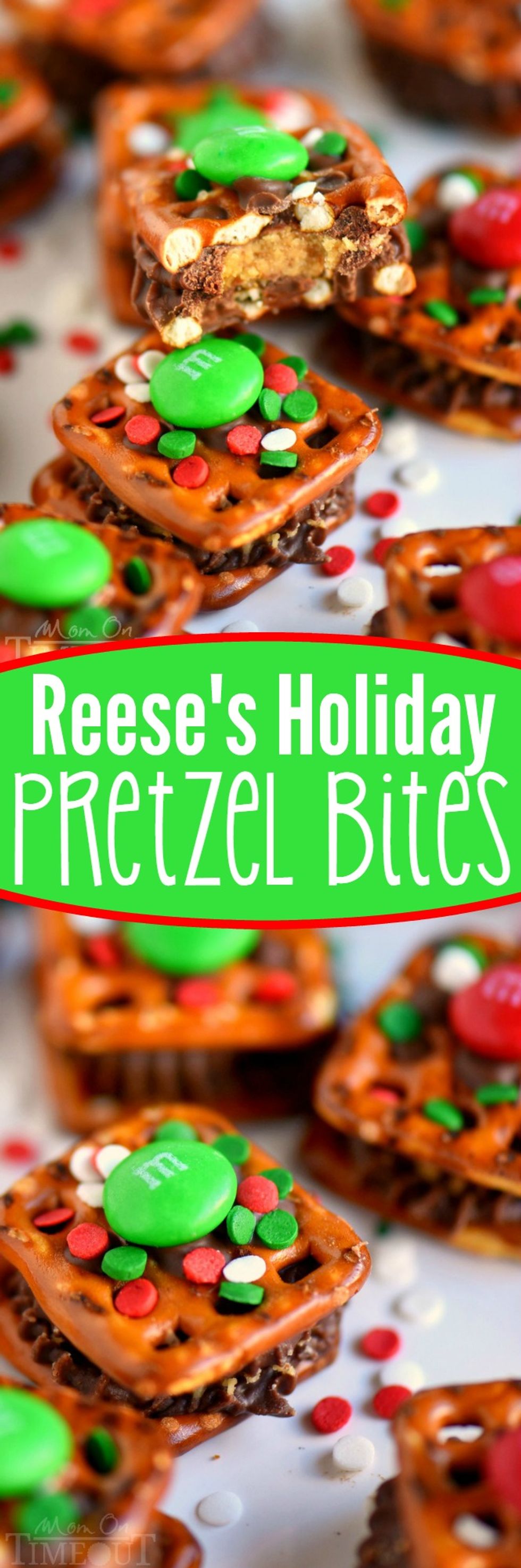 These Reese’s Holiday Pretzel Bites need to make it onto your baking list this year! This recipe is so easy, your kids can totally make them for you. Sweet and salty and totally festive – no one will be able to resist these little treats!