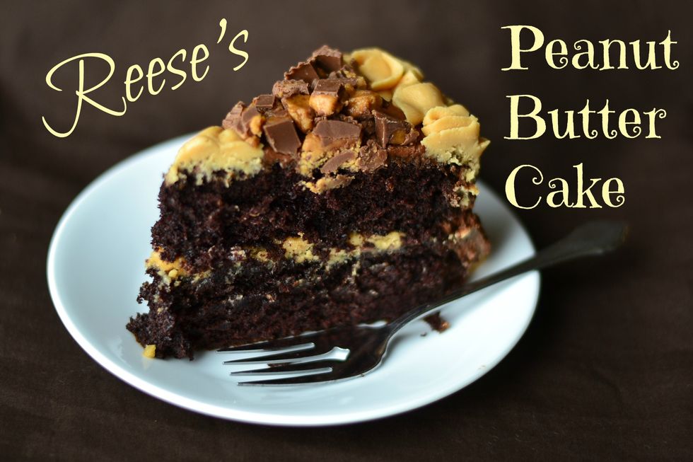 A moist, chocolate cake with peanut butter frosting, chocolate buttercream frosting, and Reese's Cups!