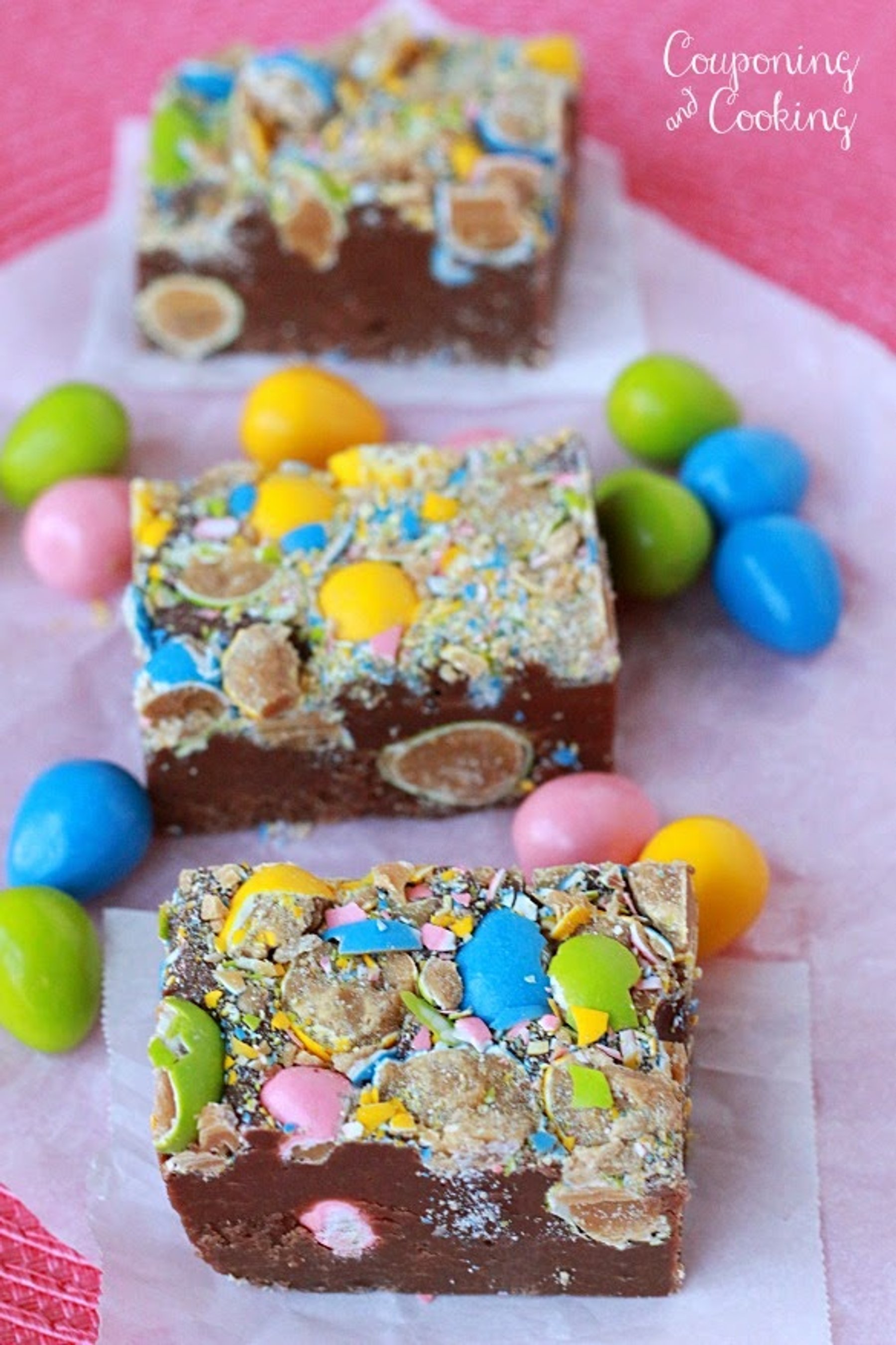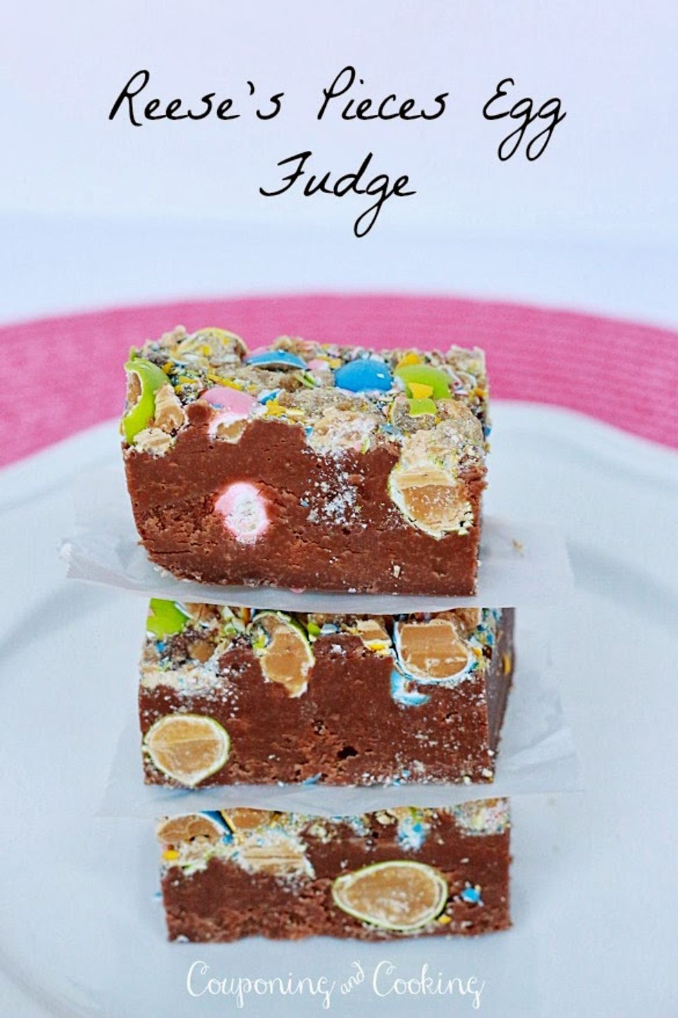 Creamy chocolate and crunchy Reese's Pieces Eggs join together to make the perfect fudge!