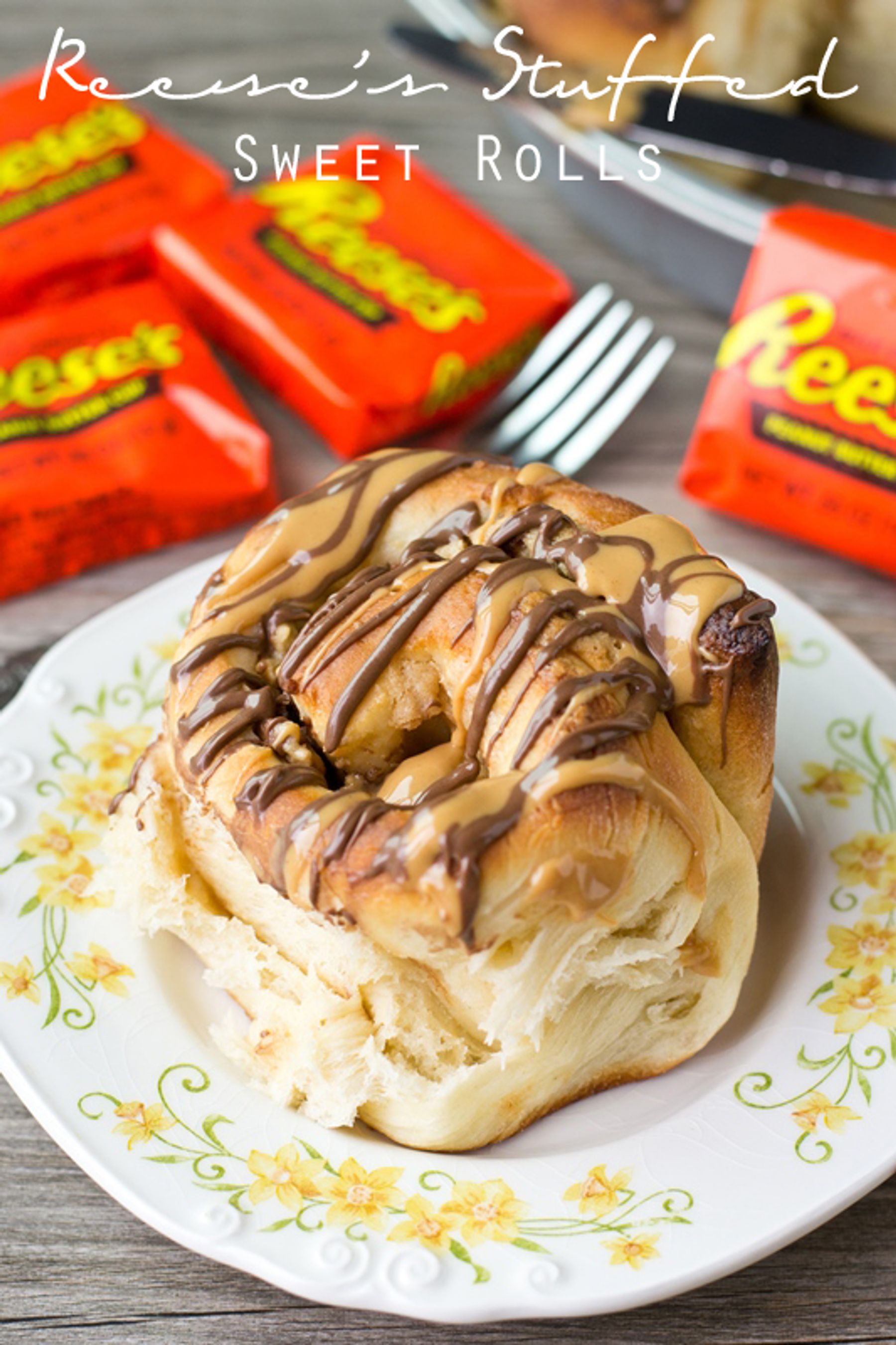 Why not have Reese’s peanut butter cups for breakfast? Peanut butter cream and Reese’s are stuffed inside this homemade bread. Such a sweet way to start your day!