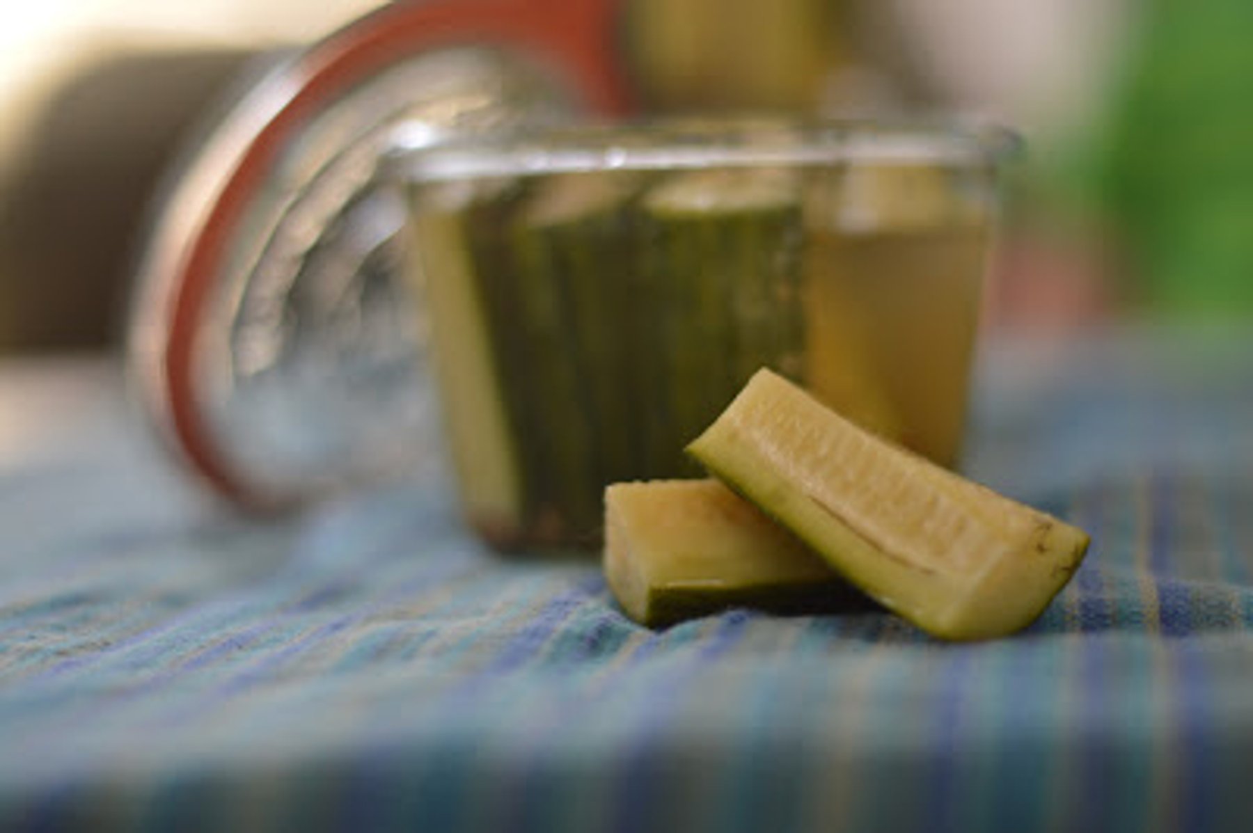 2 English cucumbers, washed, cut in 1/2 horizontally, then quartered lengthwise (and cut once again depending on height of jars)