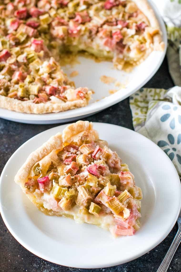 This delicious Rhubarb Pie has a classic custard style base with a flaky crust. I love the sweet and tangy combo that rhubarb gives this pie an amazing flavor. I look forward to this delicious pie recipe every spring because it's a family favorite. Grab your fresh rhubarb and make this Rhubarb Custard Pie!